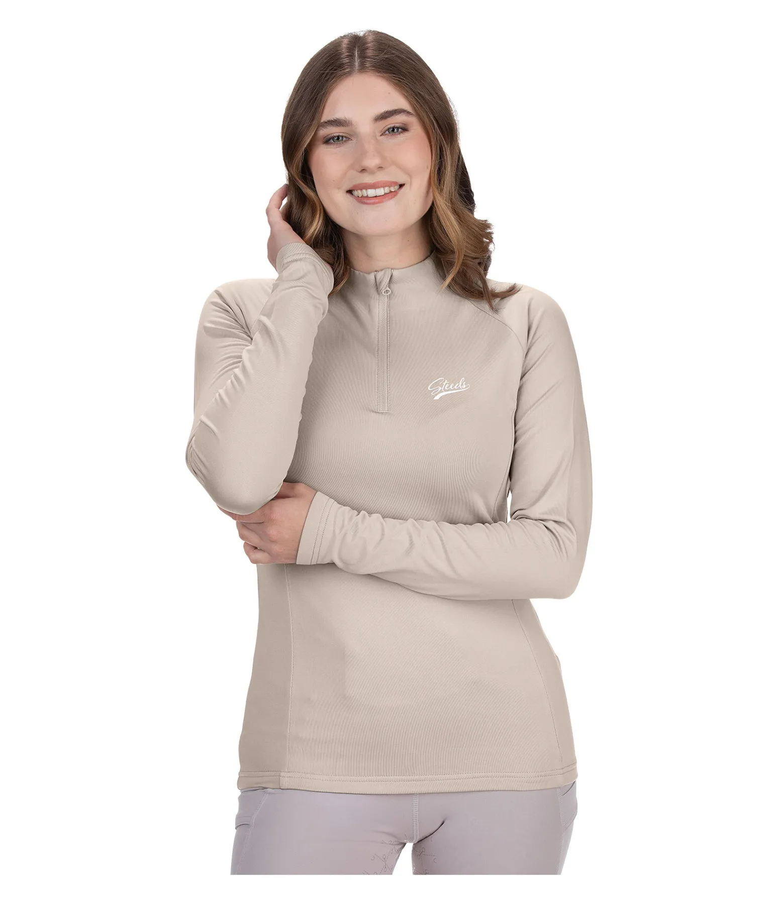 T-shirt technique à manches longues. Matière douce extensible et respirante. Séchage rapide. Col montant zippé avec protège-menton. Logo STEEDS sur la poitrine. Intérieur molletonné. 93 % polyester, 7 % élasthanne.