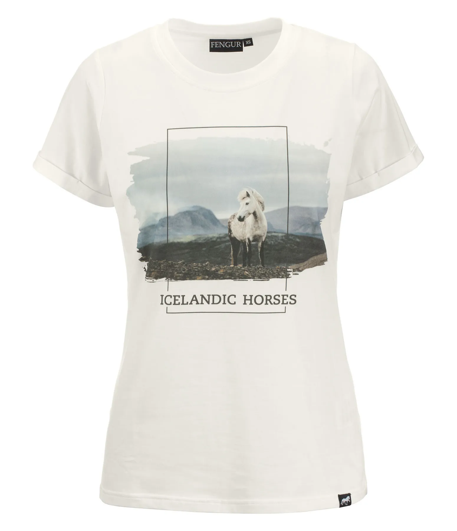 T-shirt doux cintré avec motif islandais. Respirant. 95 % coton, 5 % élasthanne.