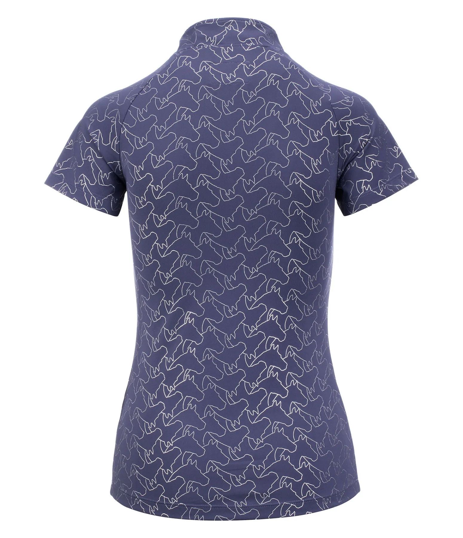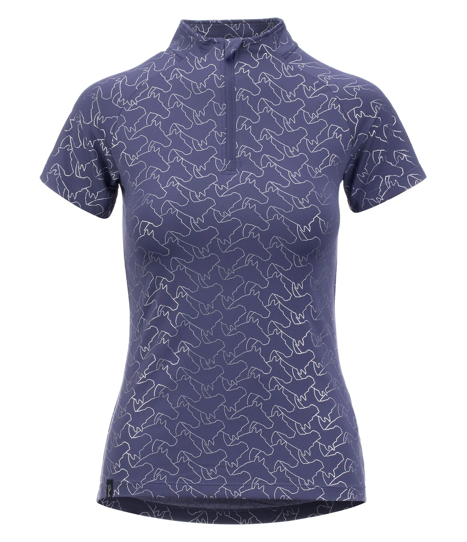 T-shirt chic et technique à manches courtes. Imprimé all-over métallisé motif tête de cheval. Manches raglan et petit col montant avec fermeture à glissière et protège-menton. Respirant et à séchage rapide. 88 % polyester, 12 % élasthanne.