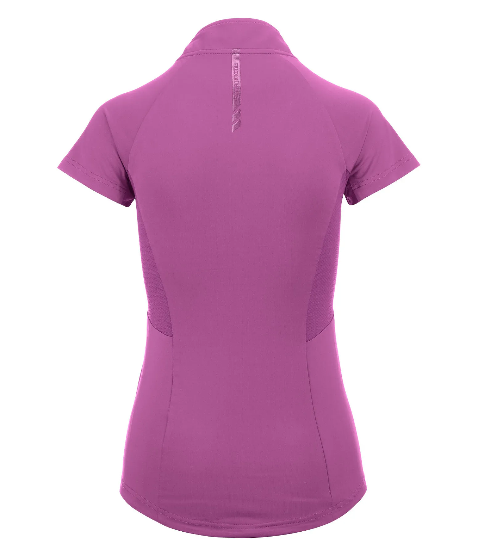 T-shirt extensible et doux. Col montant zippé. Empiècements en mesh pour une respirabilité optimale. Manches raglan. Séchage rapide. 88 % polyester, 12 % élasthanne.