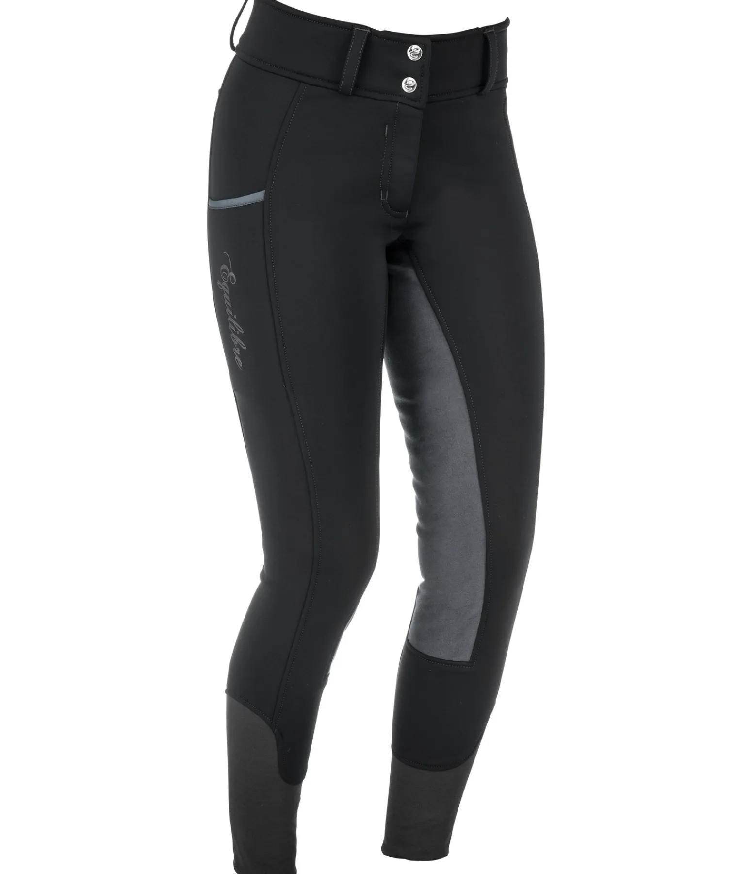 Pantalon d’équitation d’hiver coupe-vent et chaud. Fond intégral extensible en synthétique. Intérieur molletonné et doux. Bas de jambe extensible sans patte auto-agrippante. Large ceinture extensible. Une grande poche pour téléphone portable sur la cuisse et une poche arrière zippée. Matière extérieure 88 % nylon, 12 % élasthanne, doublure 100 % polyester.