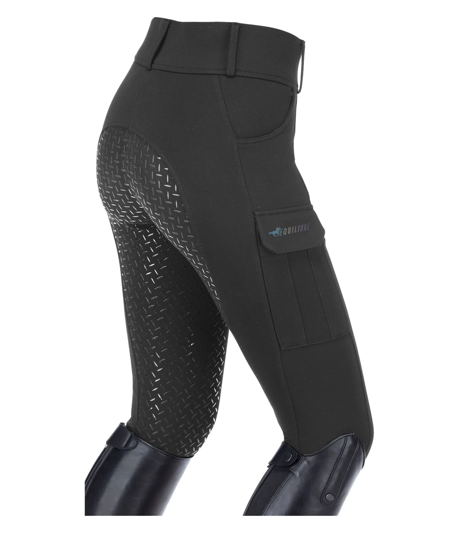Pantalon d’équitation à fond intégral en silicone avec poches cargo. Imprimé holographique du logo sur une des poches et à l’arrière du pantalon. Matière stretch respirante et extensible dans 4 directions. 2 poches avant. Ceinture élastiquée avec passants. Bas de jambe extensible. 68 % viscose, 27 % nylon et 5 % élasthanne.