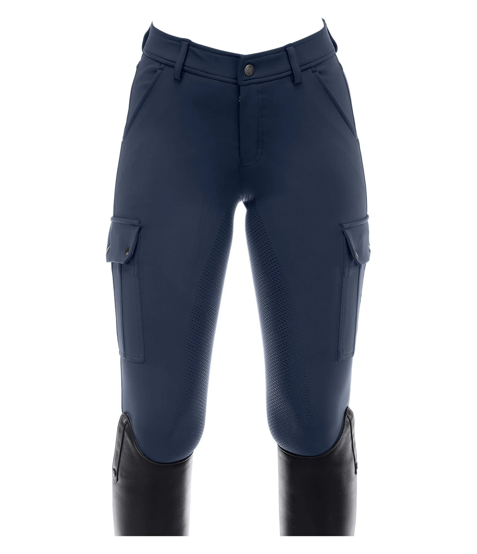Pantalon d’équitation tendance au confort inégalé. La ceinture extra-basse en fait un pantalon mixte. Look sportif grâce aux 2 poches cargo latérales avec boutons-pression. Fond intégral en silicone. Bas de jambe extensible. 75 % polyester, 25 % élasthanne.