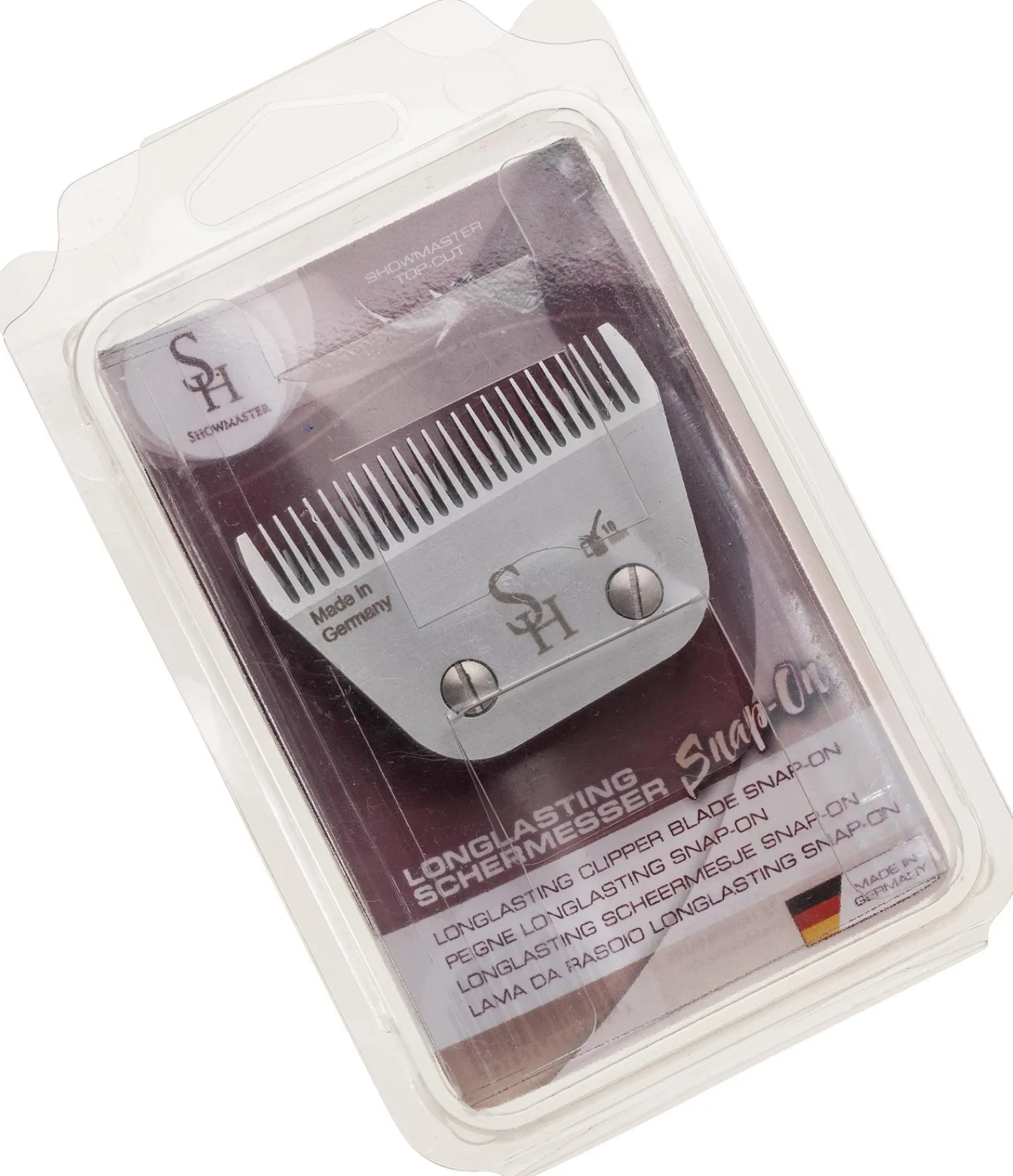 Peignes professionnels pour notre tondeuse SHOWMASTER 431 858 avec tête de rasage Snap-On. Particulièrement durables. Hauteur de coupe 2,4 mm. Fabriqués en Allemagne. Pour tondeuses avant mars 2021.
