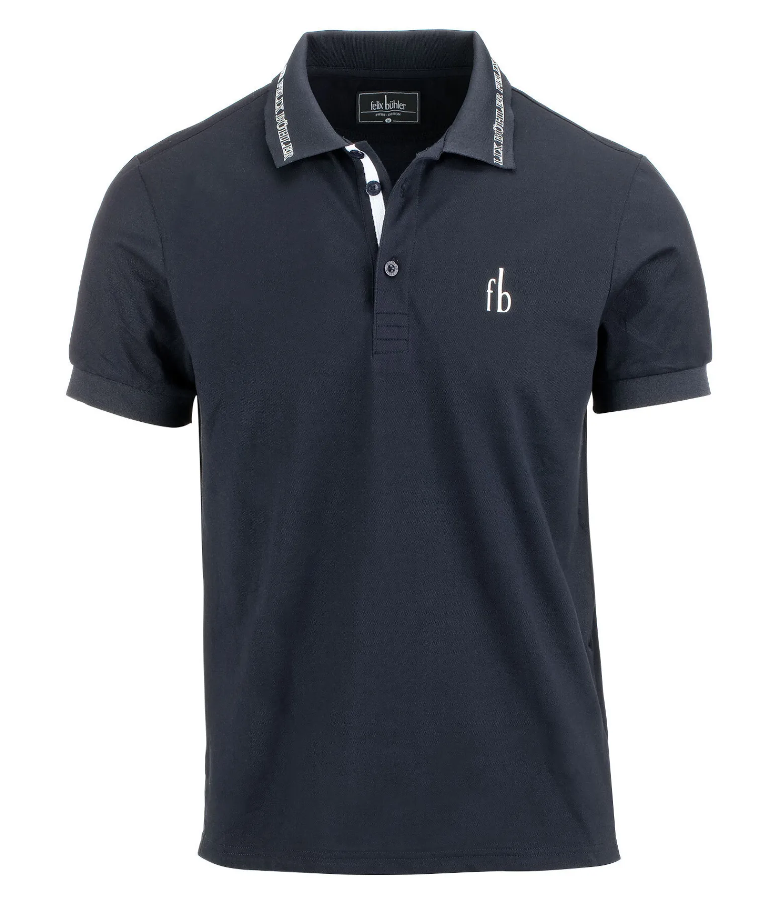 Polo à séchage rapide avec logo Felix Bühler sur la poitrine et inscription sur le col. 50 % polyester, 46 % coton, 4 % élasthanne.