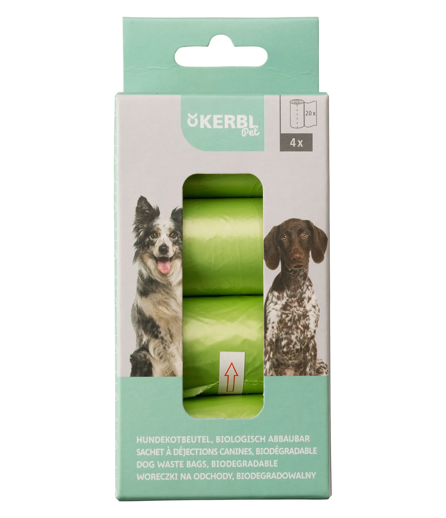 Sacs à crottes verts. Biodégradables, 4 x 20 sacs.