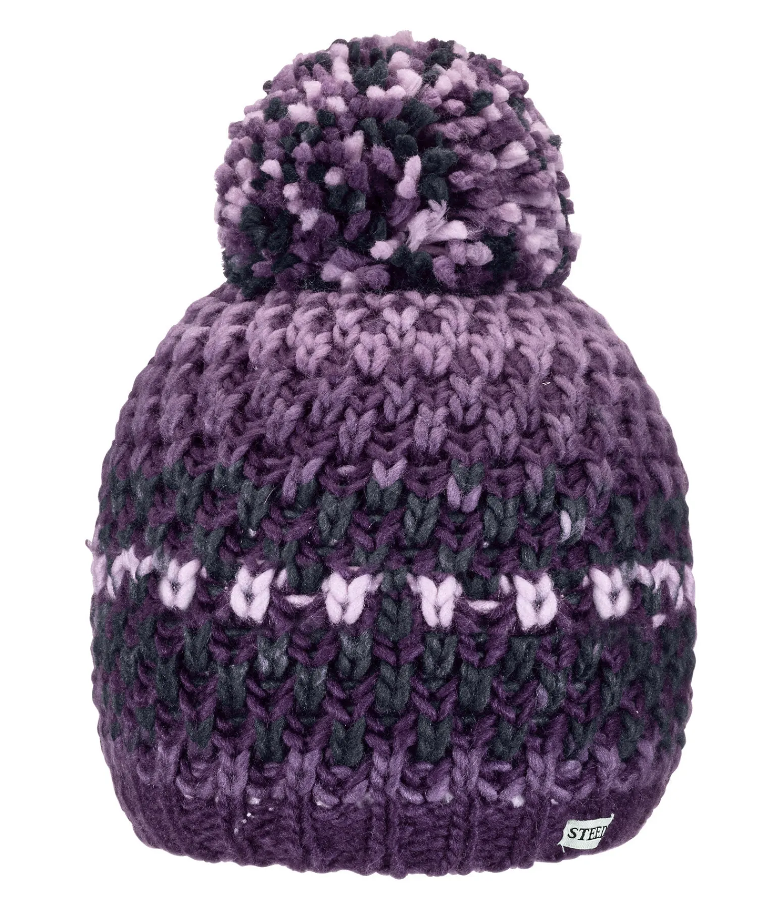 Bonnet à pompon en tricot multicolore avec intérieur doux en polaire Teddy. 100 % polyacrylique.