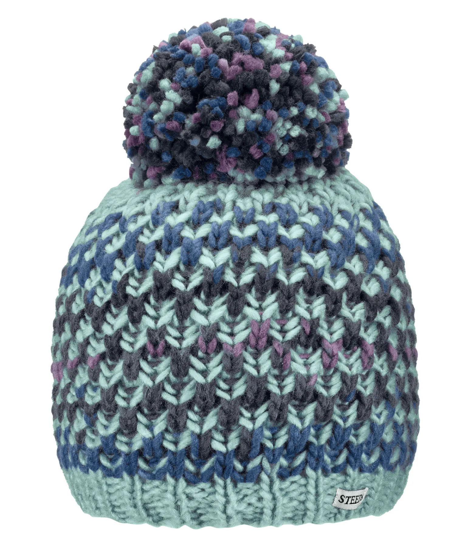 Bonnet à pompon en tricot multicolore avec intérieur doux en polaire Teddy. 100 % polyacrylique.