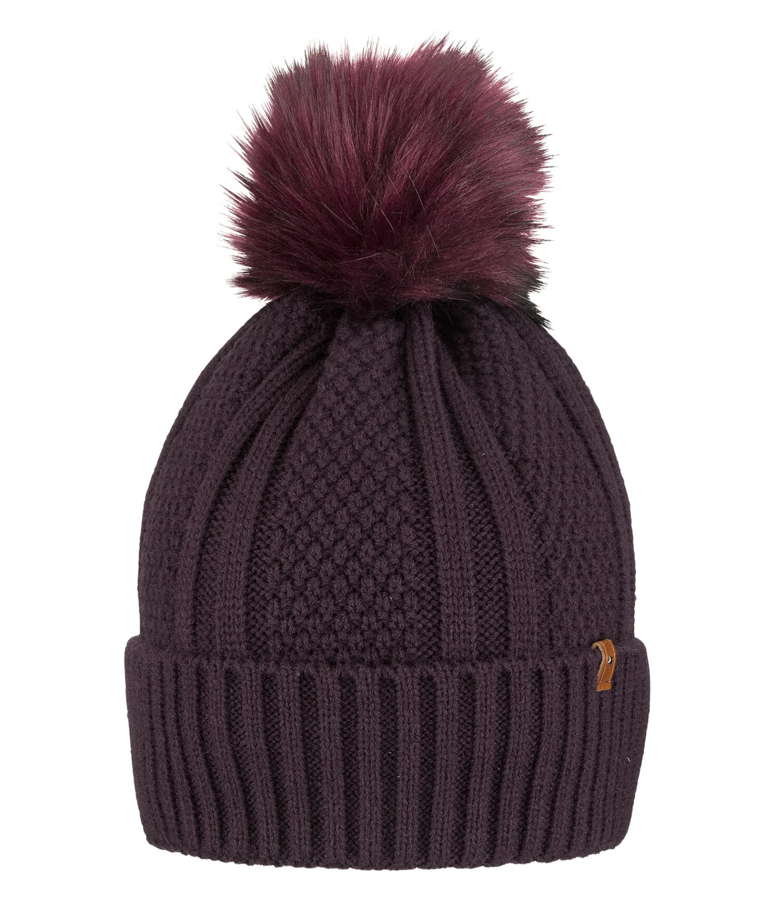 Bonnet à revers en maille avec pompon en fourrure synthétique. Doublure intérieure en polaire chaude. 100 % polyacrylique, doublure 100 % polyester.