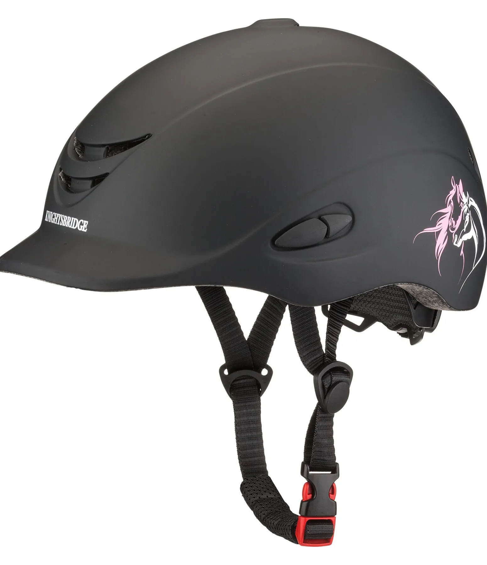 Casque d’équitation In-Mold ultra léger (la coque intérieure en EPS est solidement soudée à la coque extérieure en ABS) doté d’un ajustement précis et d’une ventilation optimale. Les quatre fentes d’aération à l’avant et à l’arrière du casque offrent une excellente ventilation interne. La molette de réglable à l’arrière permet un ajustement parfait, au millimètre près, du casque à la tête. La doublure intérieure en mesh est amovible et lavable en machine à 30° C. Caractéristiques supplémentaires : coussinets doux au niveau du menton, de la nuque et de la molette de réglage. Visière de casque intégrée. Certifié selon la norme EN1384:2023.