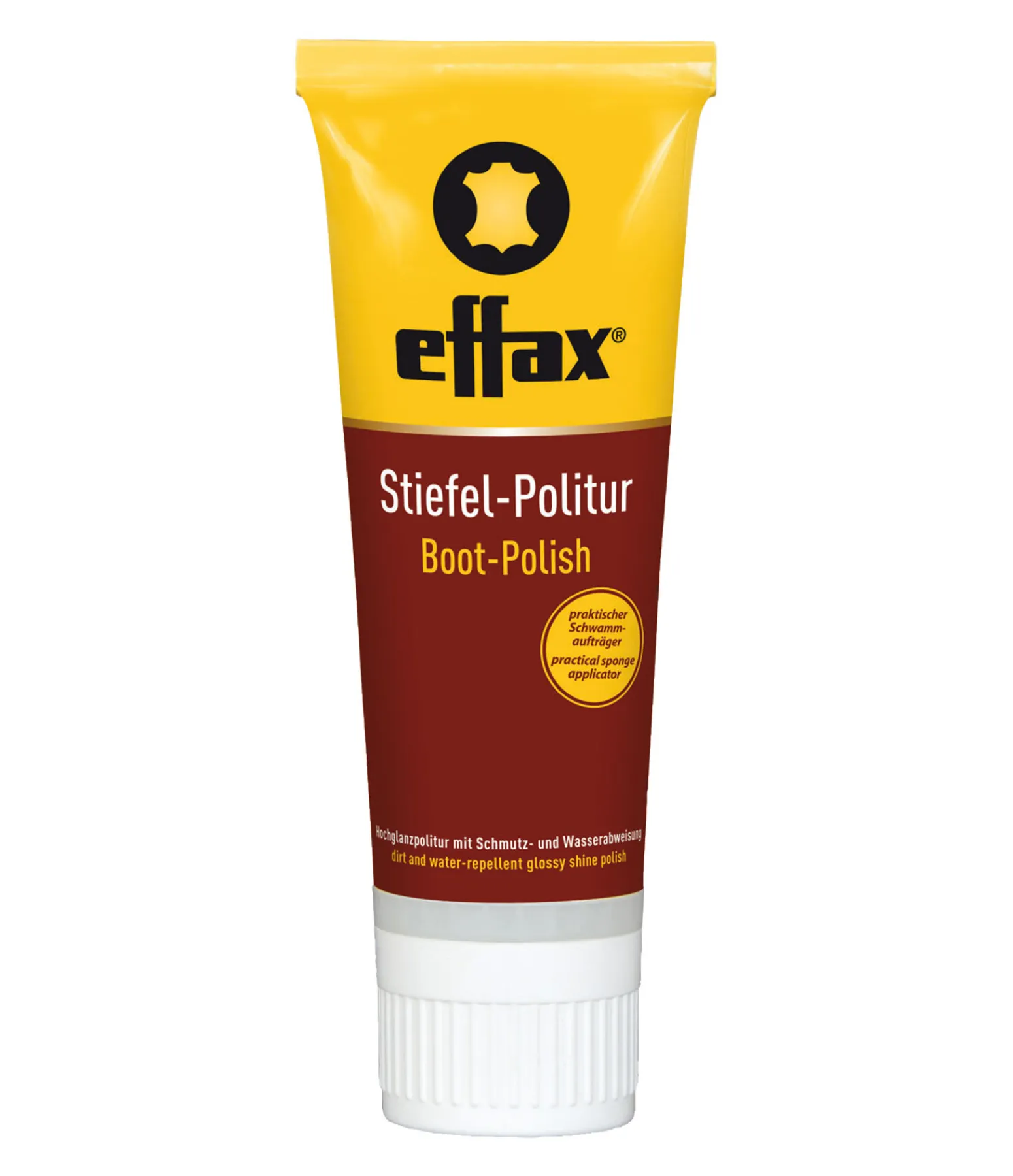 Application : après le nettoyage des bottes, appliquer le cirage en fine couche et lustrer. Conseil : pour un résultat encore plus brillant, utiliser un chiffon doux et sec.