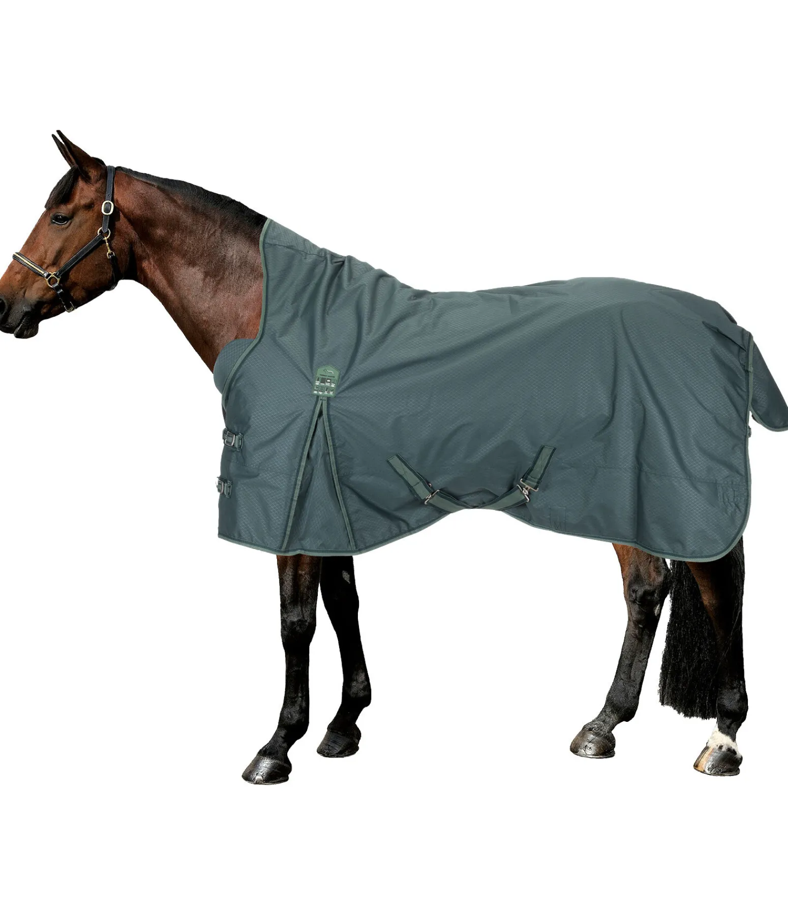 Couverture d’extérieur innovante dans une coupe Highneck, empêchant l’infiltration d’eau dans la zone des épaules et permettant d’éviter les pressions dans la zone du garrot. Coussins moelleux doublés de polaire de part et d’autre des épaules, permettant une répartition optimale des pressions lorsque le cheval baisse la tête. Matière Ripstop 600 deniers imperméable (colonne d’eau 3.000 mm) avec motifs en filigrane discrets. Garnissage 100g chaud. Doublure en polaire douce et doublure lisse protégeant la robe au niveau des épaules et du poitrail. Double fermeture de poitrail réglable avec mousquetons, anneaux en D et patte auto-agrippante supplémentaire, sursangles croisées réglables. Anneaux permettant la fixation de courroies de cuisses (non incluses), rabat de queue et courroie de queue réglable inclus. 100 % polyester.