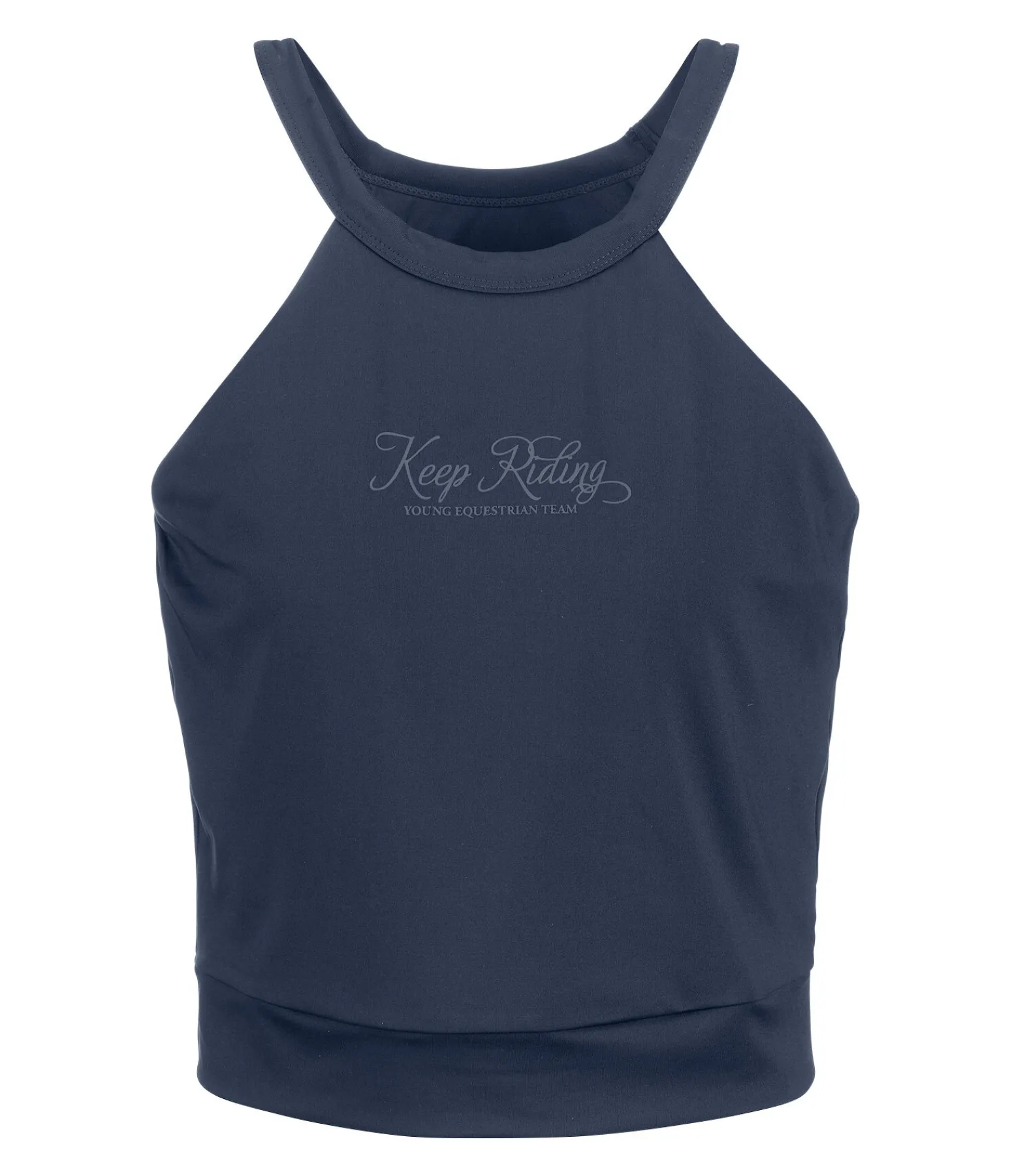 Crop top décontracté pour enfant en tissu technique, respirant et à séchage rapide. Imprimé avant et arrière et taille élastiquée. 88 % polyester, 12 % élasthanne.