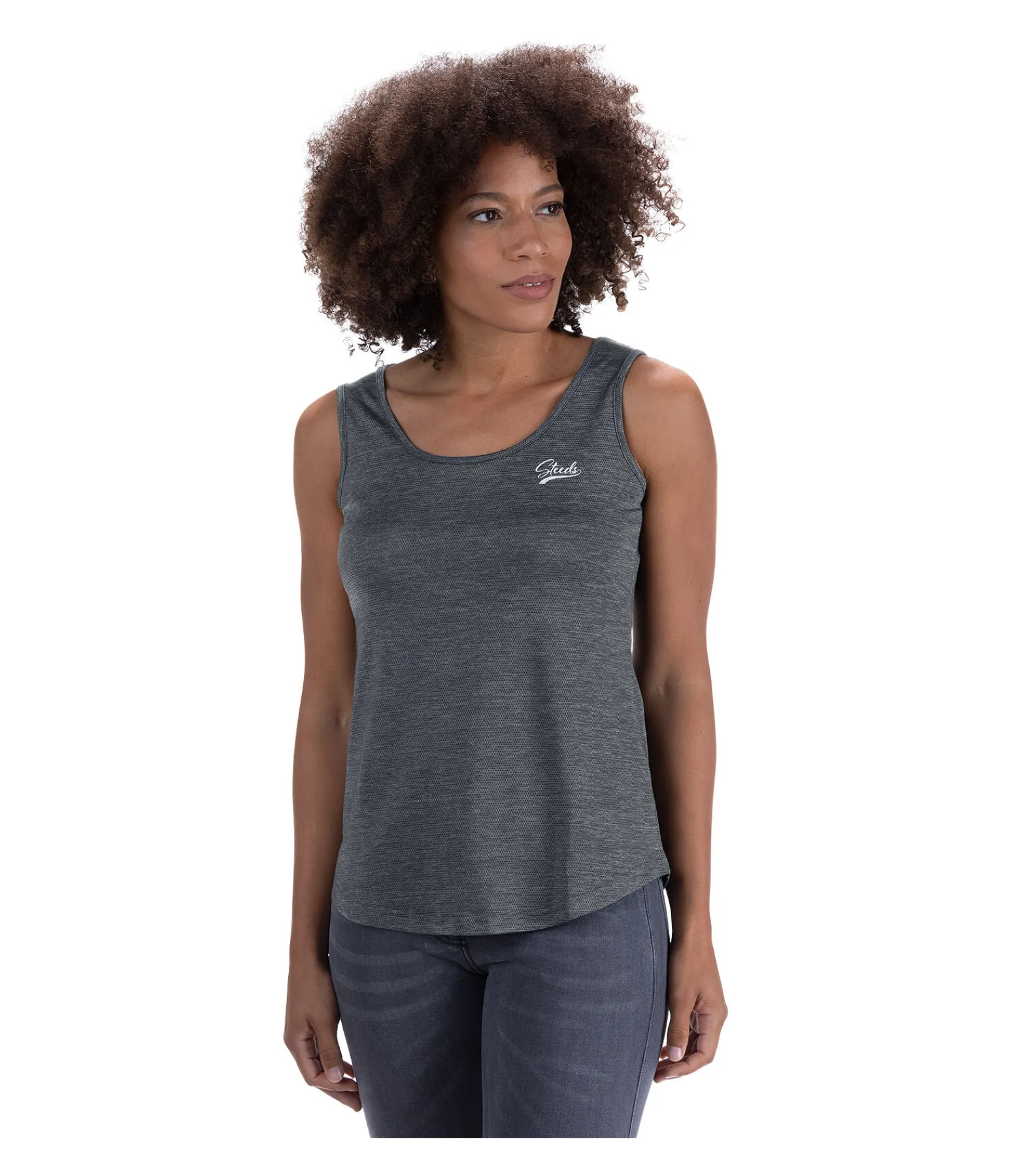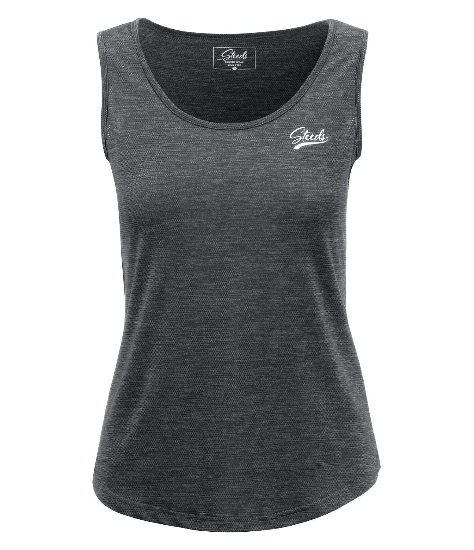 Débardeur technique à col rond. Matière respirante. Séchage rapide. Logo STEEDS sur la poitrine. 59 % polyamide, 31 % polyester et 10 % élasthanne.