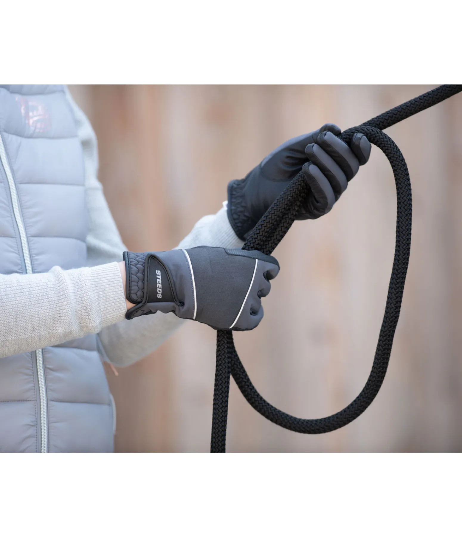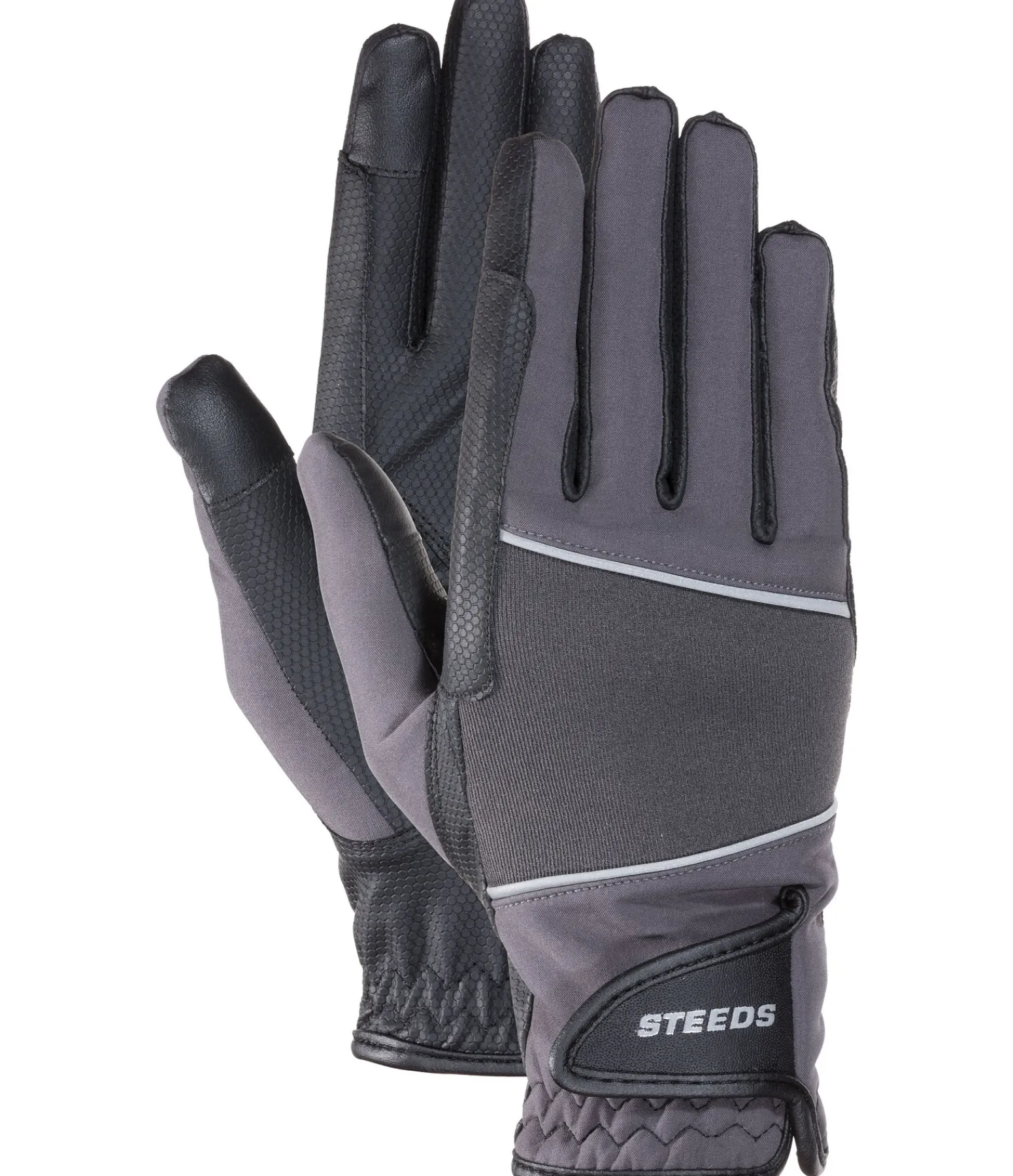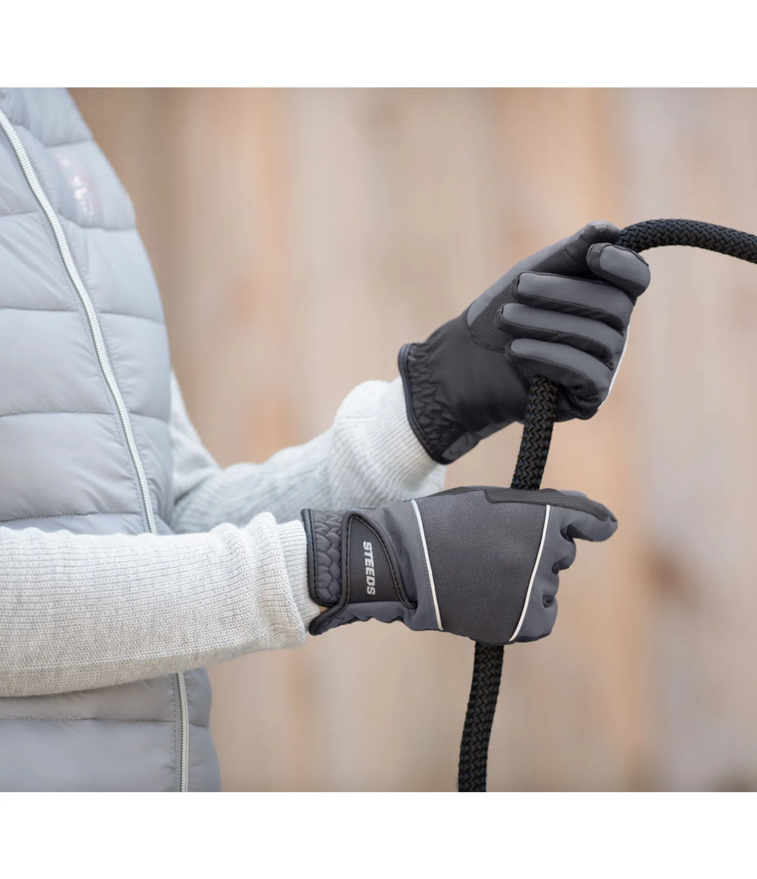 Gants d’hiver chauds avec doublure Thinsulate. Déperlants, coupe-vent et respirants. Passepoil et renforts de rênes réfléchissants. Dessus 96 % polyester, 4 % élasthanne. Paume 51 % nylon, 49 % polyuréthane. Doublure 63 % polypropylène, 37 % polyester.
