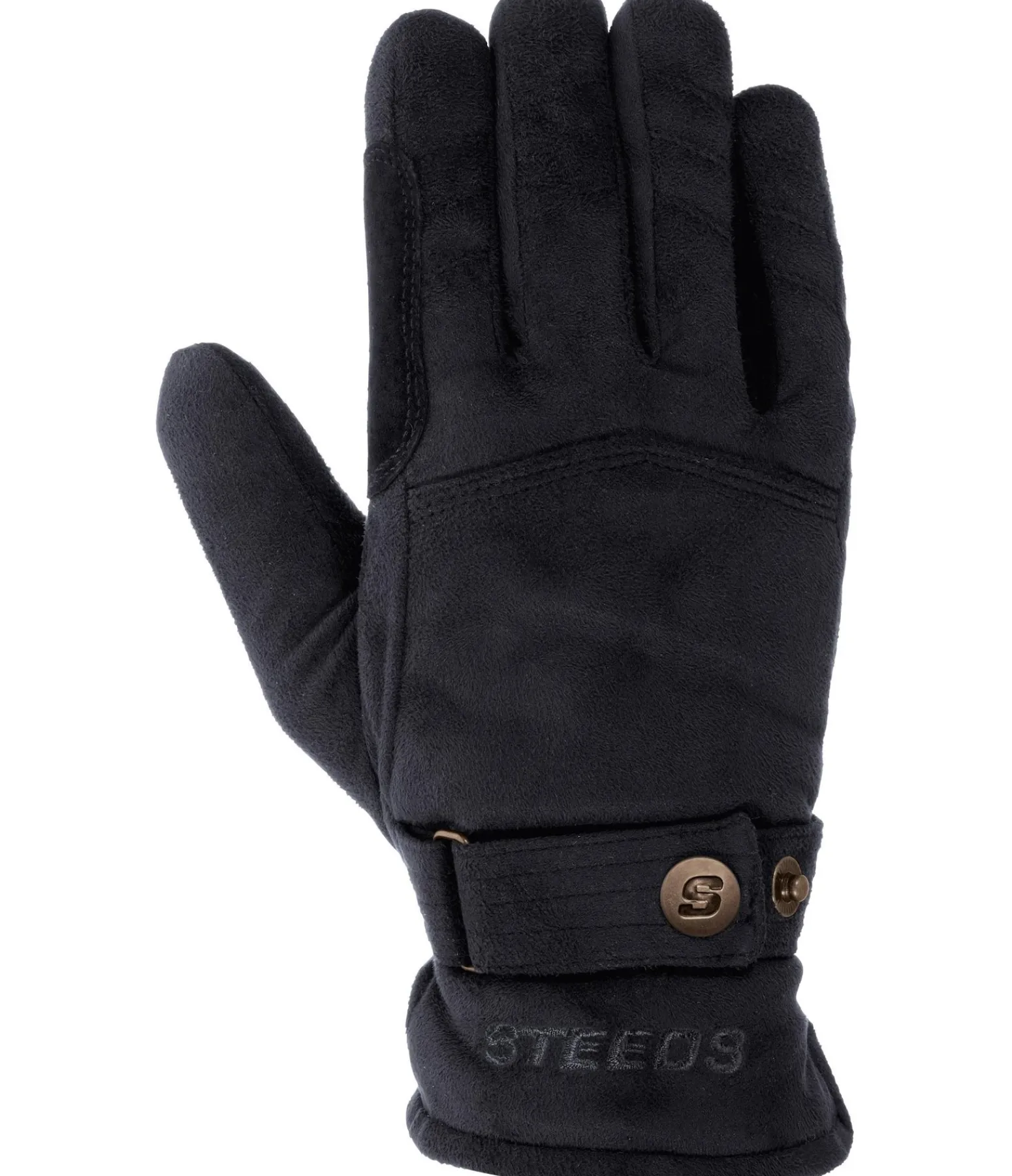 Gants chauds et douillets en polaire. Avec renforts intégrés aux passages de rênes et finition bouton-pression au poignet.
