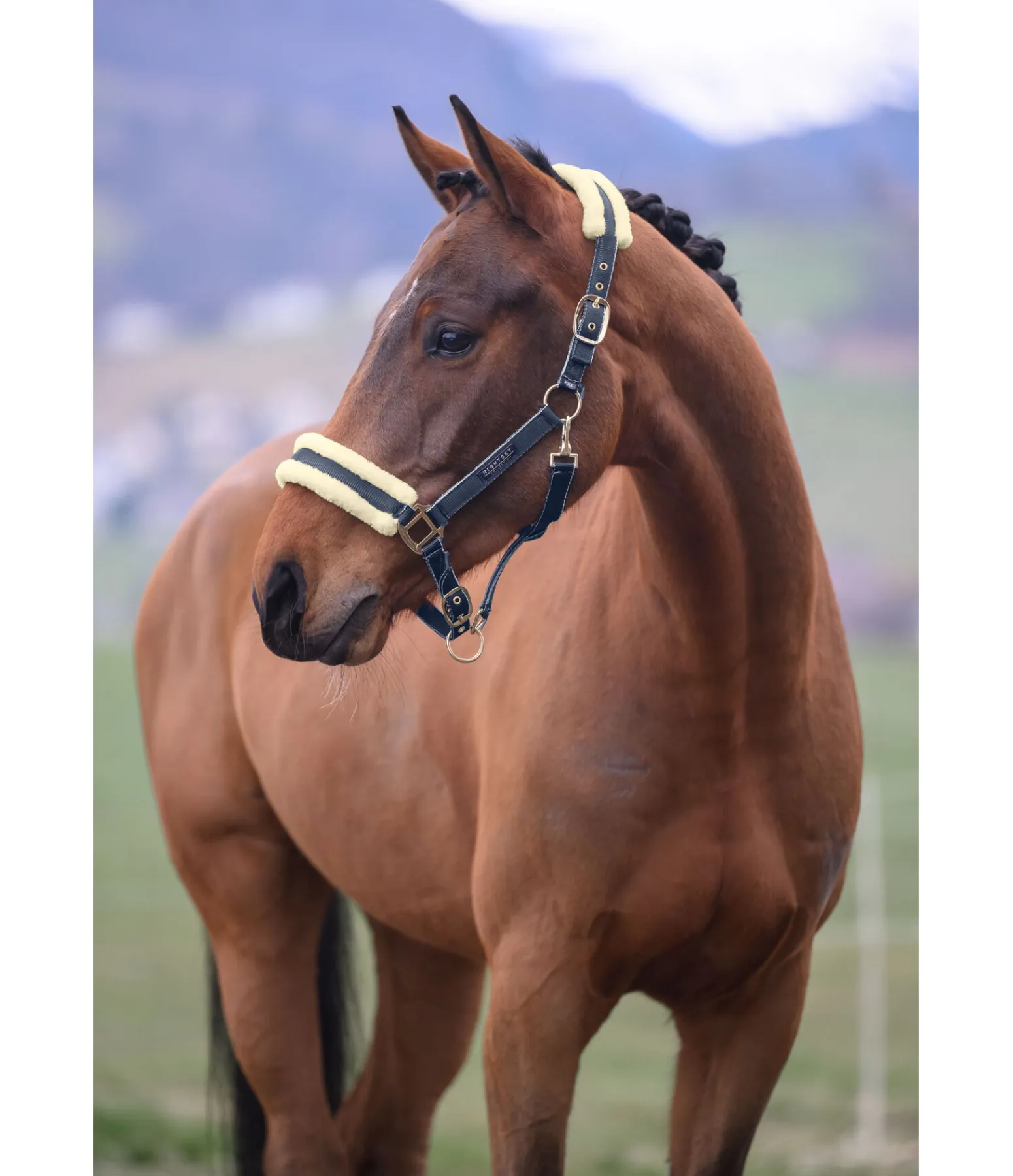 Il attirera tous les regards à l’écurie : licol d’écurie en polypropylène tissé brillant et chatoyant avec bouclerie de couleur assortie. Têtière et muserolle avec doublure en polaire Teddy douce. Têtière doublement réglable et muserolle réglable. Licol 100 % polypropylène, polaire Teddy 100 % polyester.