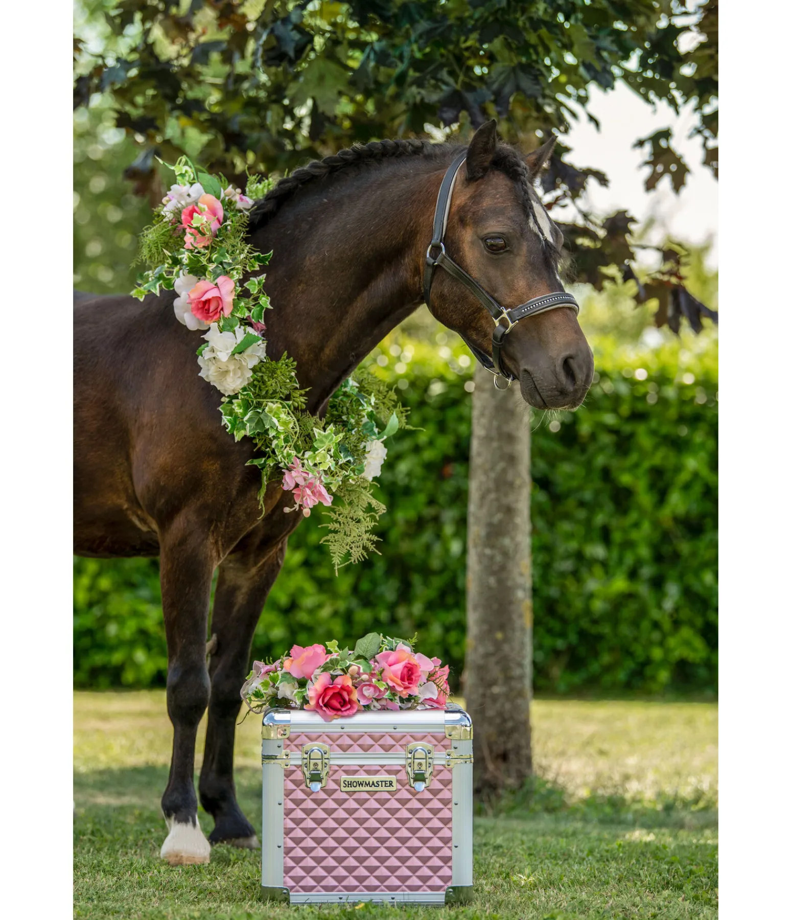 Malette de pansage de grande qualité avec cadre résistant en aluminium. Surface structurée à motifs diamants, dans un look métallisé tendance. Intérieur totalement rembourré, avec séparation au milieu et petit compartiment amovible. Avec poignée encastrée. Verrouillable. 34 x 28 x 32 cm.