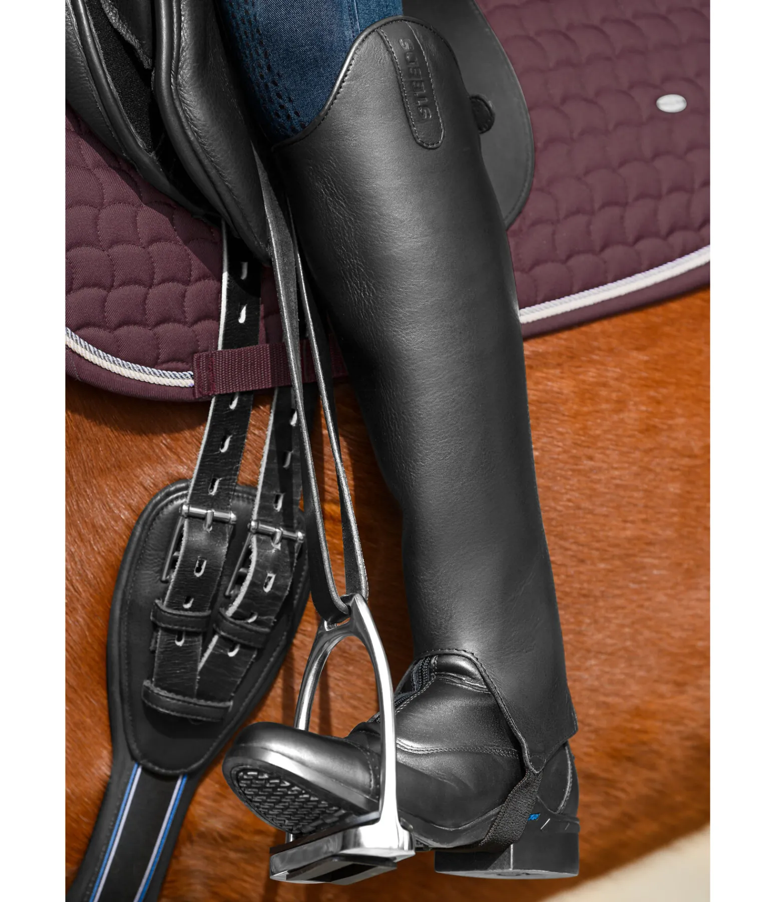 Mini-chaps de grande qualité en cuir de vachette pleine fleur doux et doublure intérieure en synthétique Amara. Les empiècements élastiques de chaque côté de la fermeture à glissière assurent un ajustement parfait au mollet. La large fermeture à glissière YKK à l’arrière ainsi que les sous-pieds résistants assurent leur longévité.