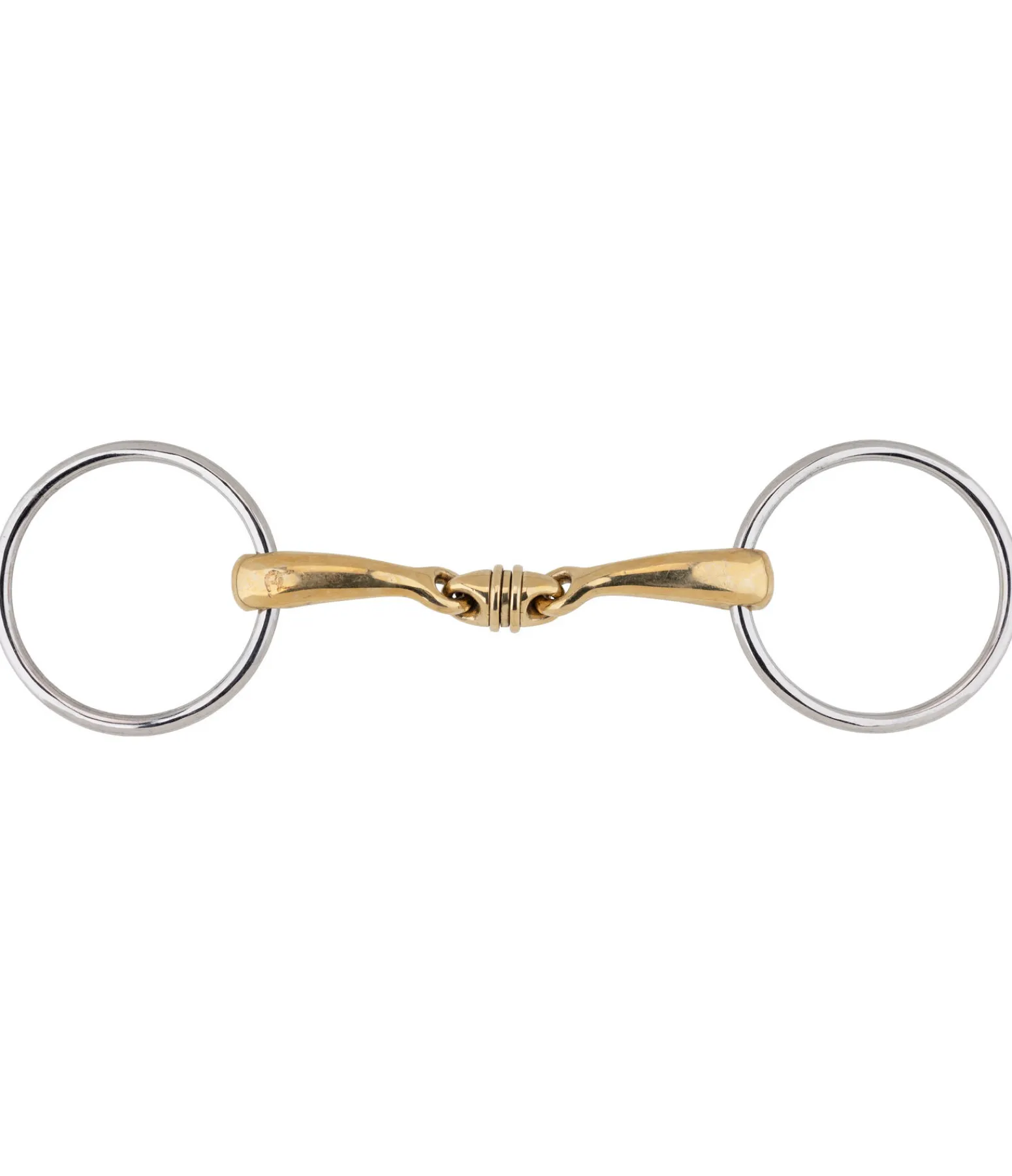 Mors double brisure avec un rouleau sur la pièce centrale. Embouchure de forme anatomique pour une action fine et précise. Peut augmenter la mastication et salivation. Épaisseur 16 mm. Diamètre de l’anneau 75 mm.