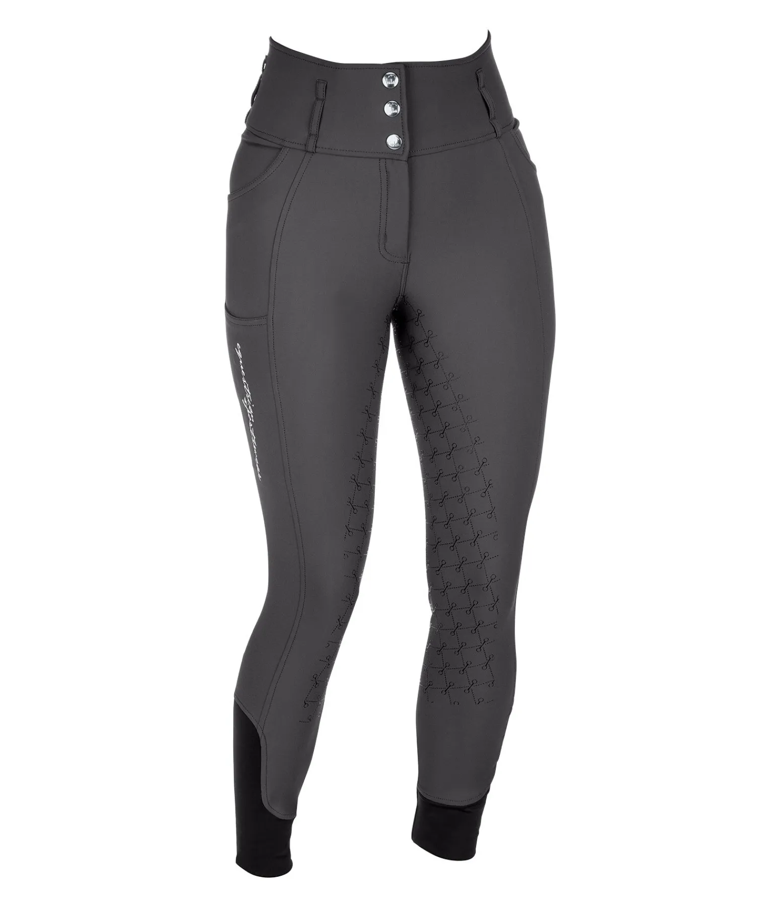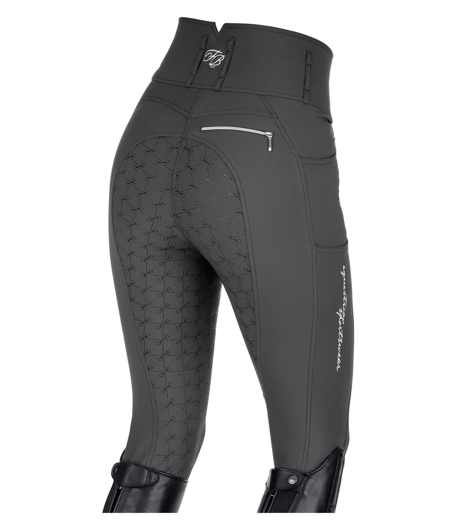Pantalon d’équitation taille haute. Fond intégral grip avec motif de mors en silicone.Matière respirante et extensible. Séchage rapide. Ceinture large avec passants et trois boutons. Signature Felix Bühler sur la jambe. Une poche arrière zippée. Une poche pour téléphone portable sur la jambe. Deux poches latérales. Aucune couture aux genoux. Bas de jambe en stretch. Matière : 88 % polyamide, 12 % élasthanne.