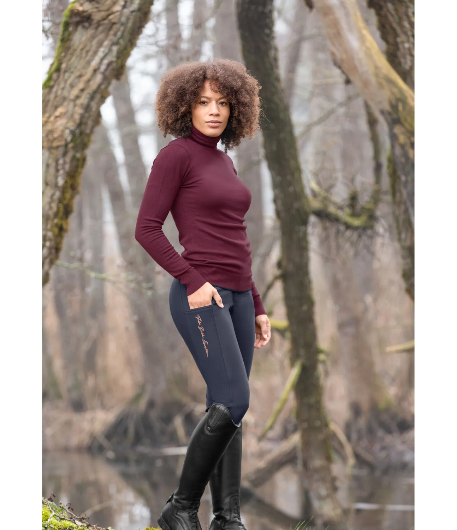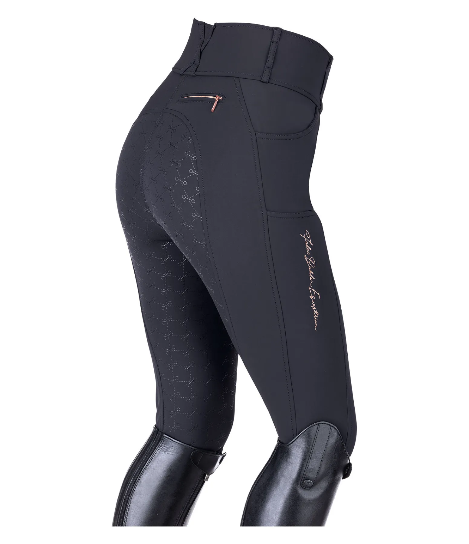 Pantalon d’équitation chaud et extensible. Fond intégral grip en silicone avec motifs de mors. Matière respirante et coupe-vent. Intérieur confortable. Broderie Felix Bühler sur la jambe. Une poche arrière zippée, une poche latérale sur la cuisse pour téléphone portable et deux poches avant. Large ceinture élastiquée avec 2 boutons. Aucune couture au niveau des genoux. Bas de jambe extensible en matière stretch. 77 % polyamide, 23 % élasthanne.