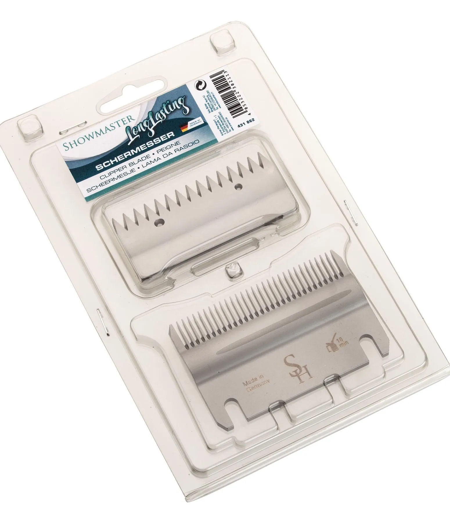 Peignes professionnels pour notre tondeuse SHOWMASTER 431 859. Durée de vie particulièrement longue Taille de la tonte 3mm. Fabriqués en Allemagne.