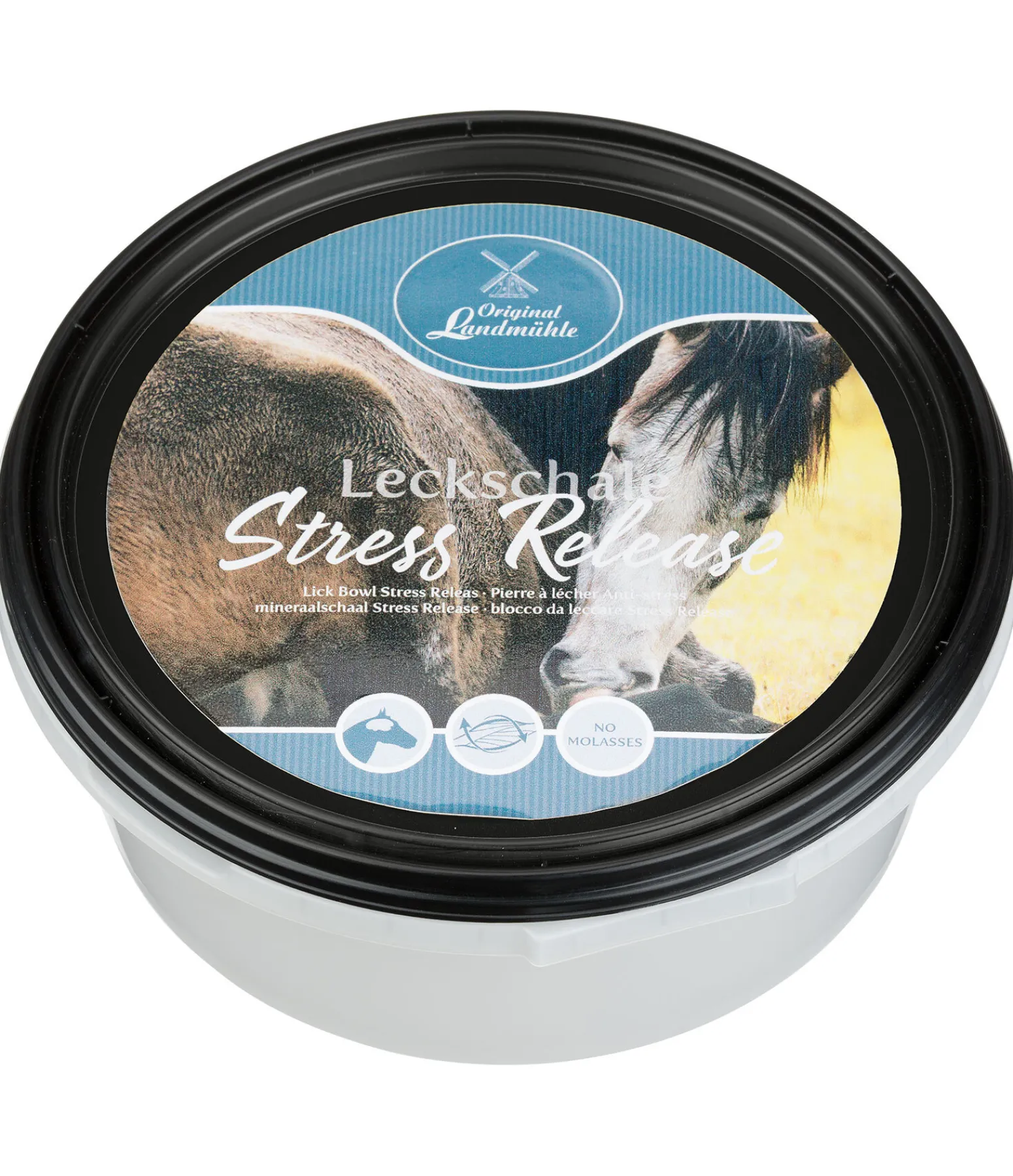 Idéale entre les repas ou pendant les soins des sabots : pierre à lécher en boîte hygiénique, contenant du magnésium et de la vitamine B12 pour soutenir la résistance au stress et le développement musculaire. Produit à base de dextrose, sans mélasse.