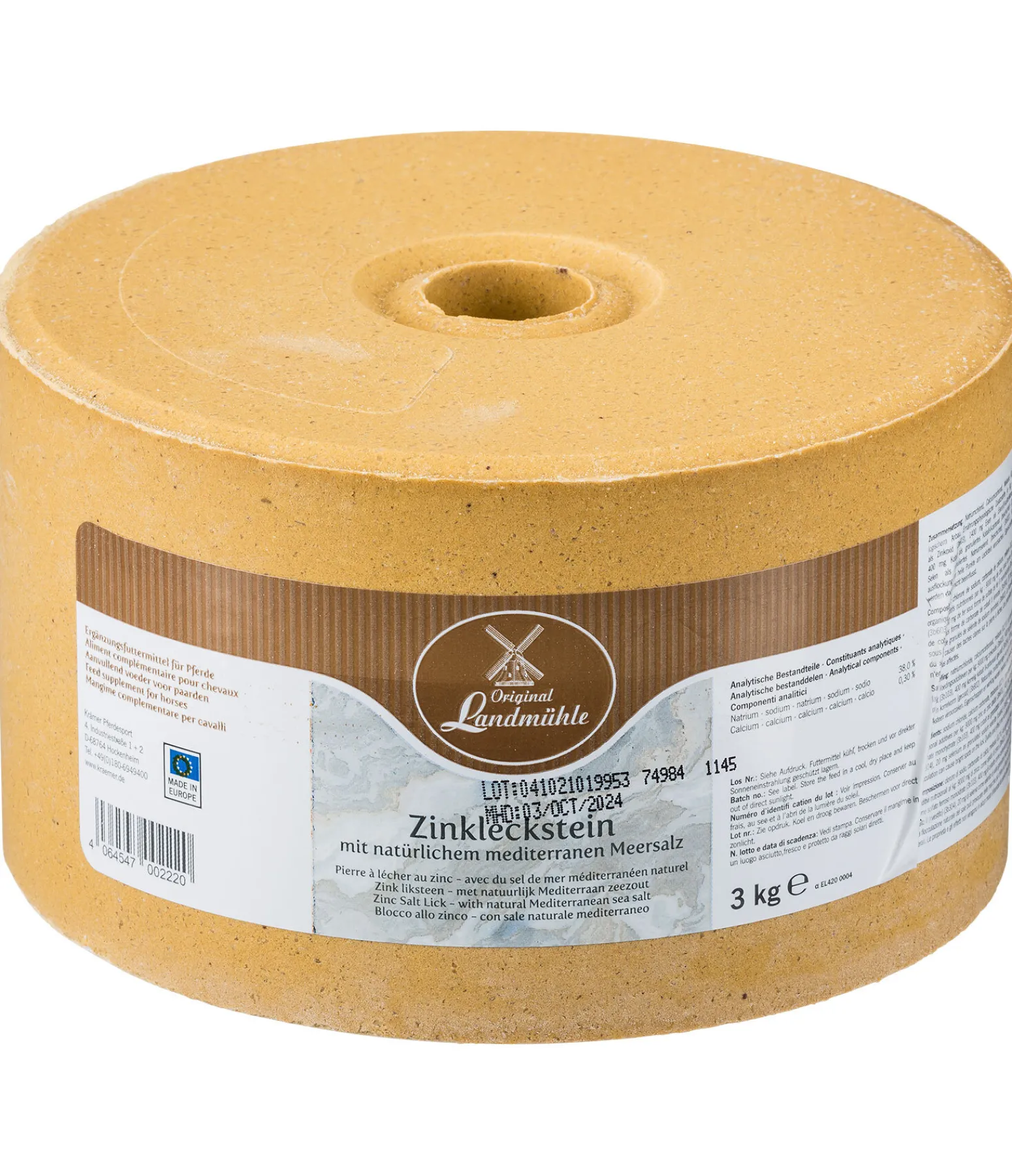 Pierre à lécher minéral au sel de mer méditerranéen contenant du zinc, du fer et du sélénium. Peut avoir un effet positif sur la peau, la robe, la croissance des sabots et le métabolisme.