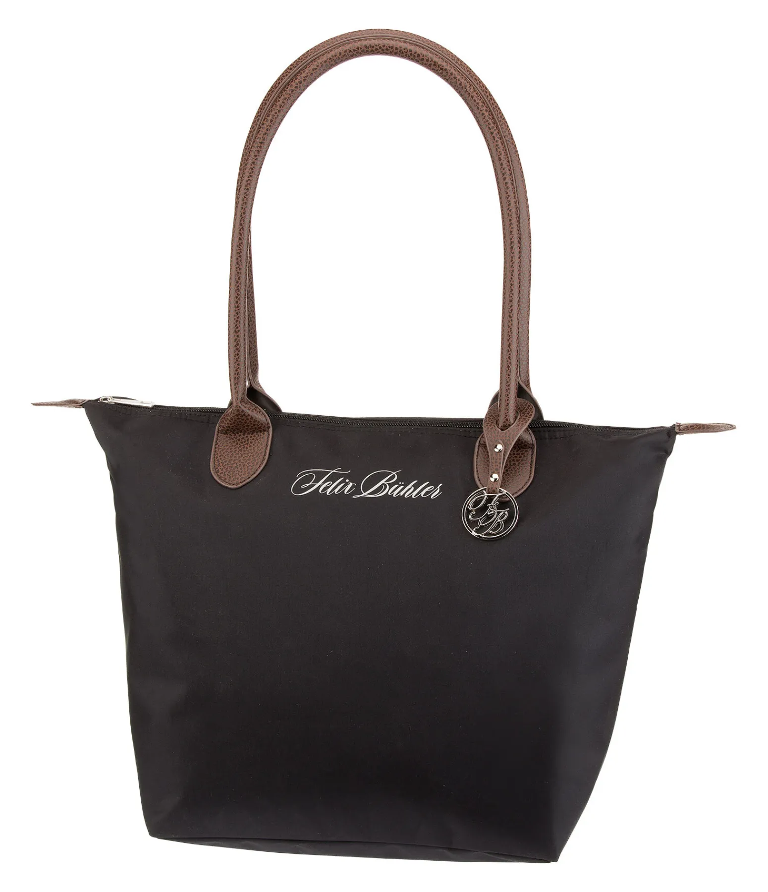 Sac à main tendance avec pendentif chic Felix Bühler. Polyester facile d’entretien avec anses solides en matière synthétique de grande qualité. Fermeture à glissière pour ouvrir et ranger, petite poche intérieure zippée. S (19 x 30 x 15 cm. Anses 38 cm), M (32 x 42 x 15 cm, anses 64 cm). 100 % polyester. Lavage à la main.