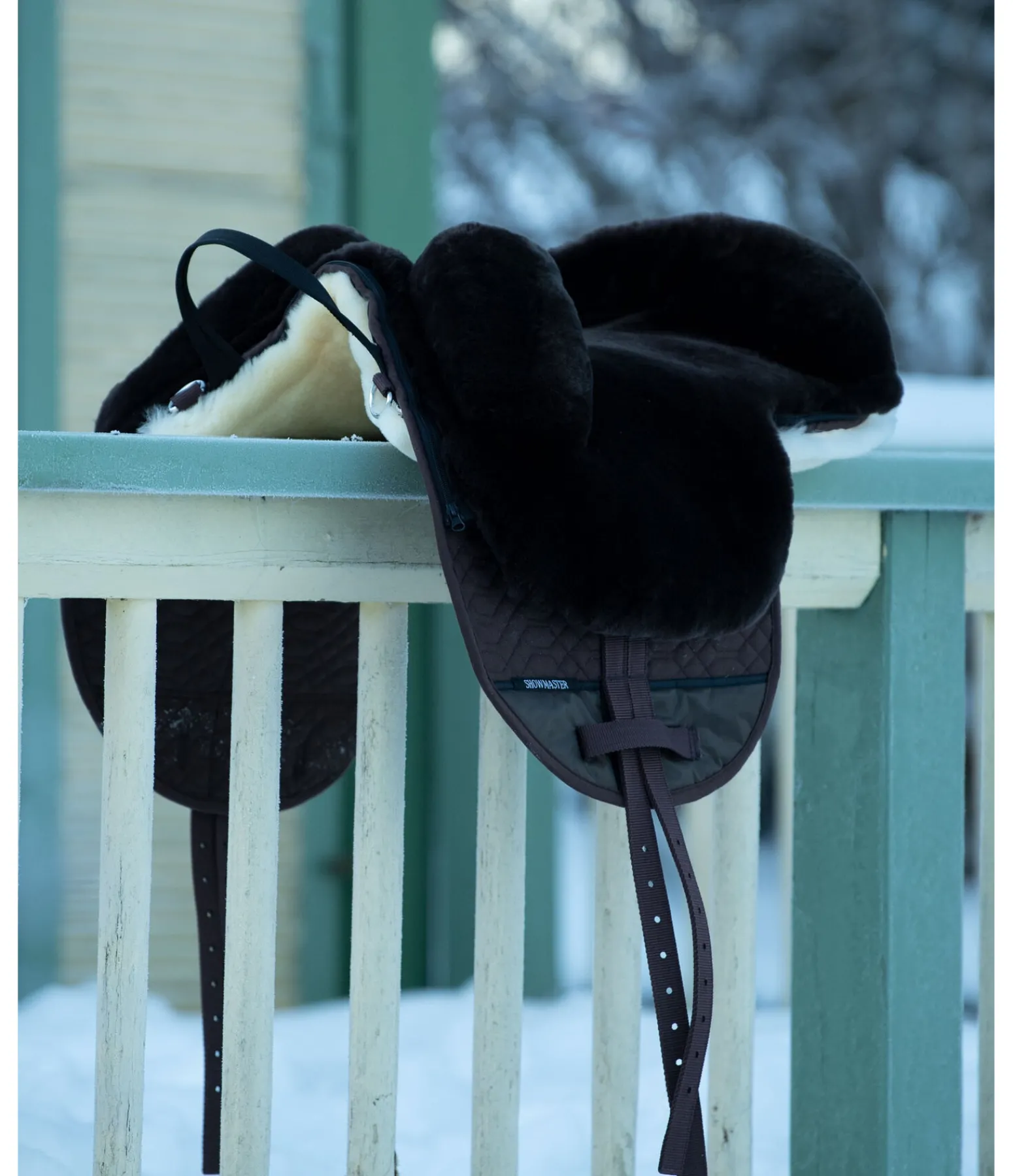Selle en véritable fourrure d’agneau améliorant de manière significative la communication entre le cavalier et le cheval. Extérieur et dessous 100 % fourrure d’agneau. Taquets à l’avant pour un maintien sûr et un confort optimal. Inserts épais amovibles et repositionnables pour un parfait ajustement et un grand confort pour le cheval. Avec couteaux d’étrivières, deux anneaux en D à l’avant, deux anneaux en D à l’arrière et longs contre-sanglons.