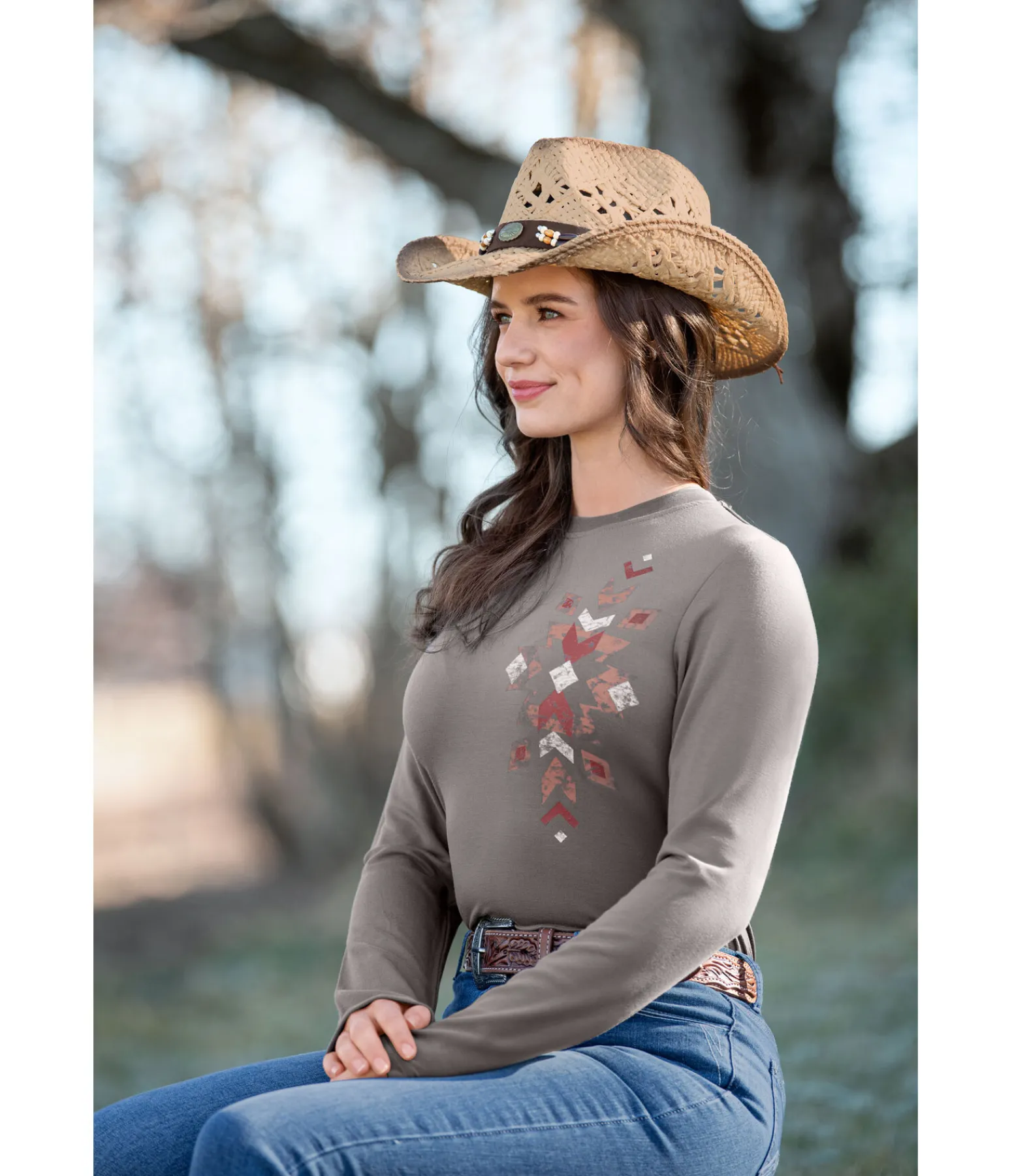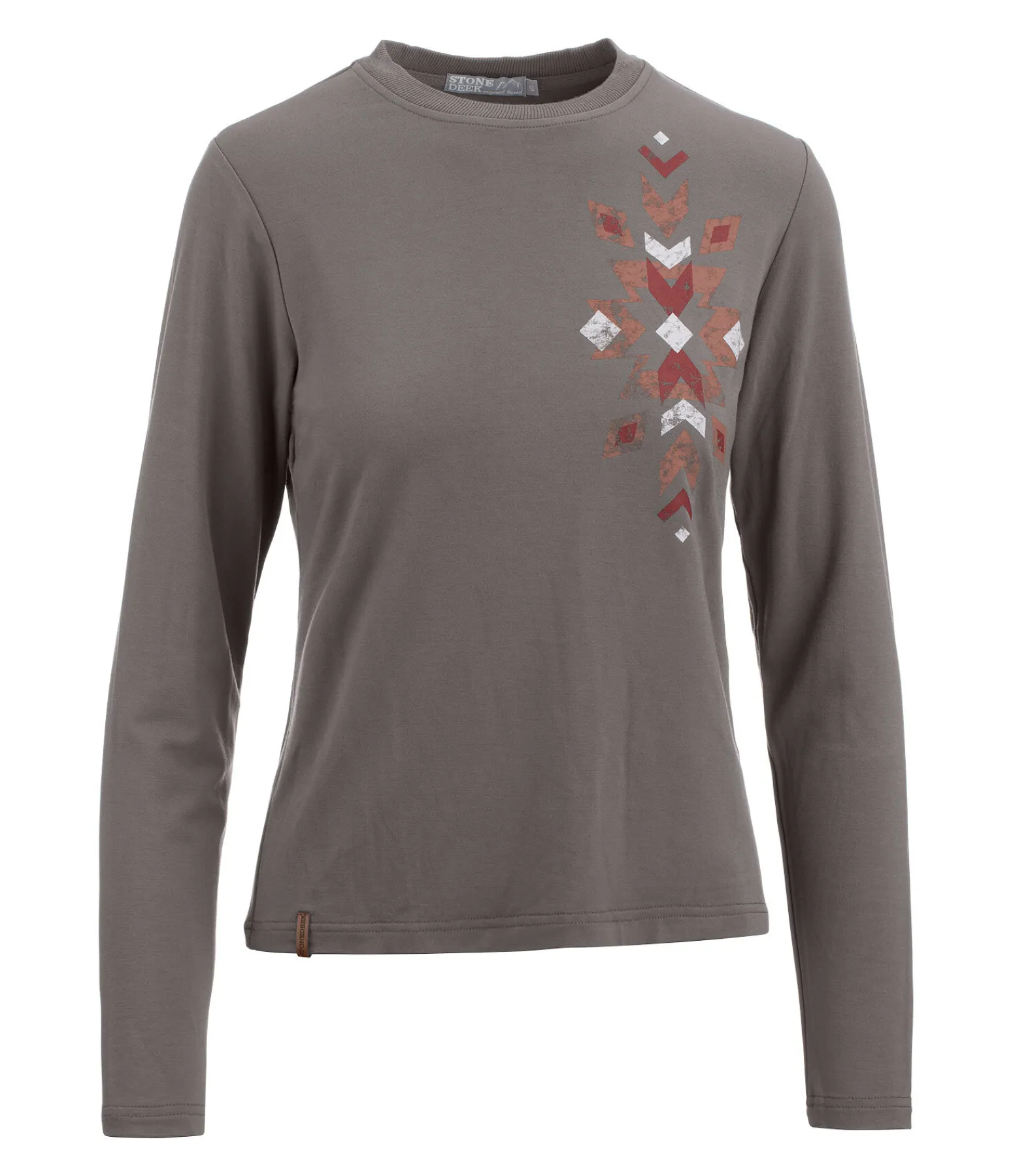 T-shirt à manches longues extrêmement doux avec impression ikat sur le devant. Avec un col rond en bord-côte et une coupe droite à la taille. 95 % viscose (à base de fibre de bambou), 5 % élasthanne.