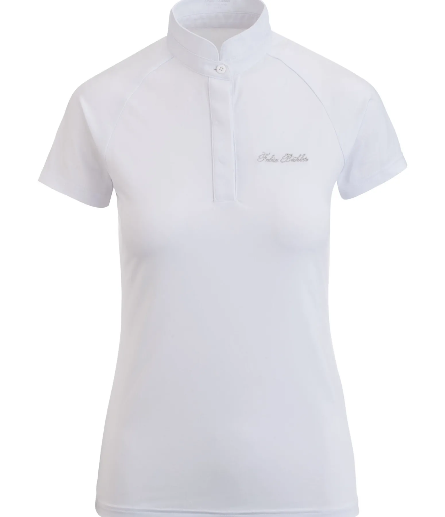 Élégant T-shirt de compétition technique. Patte de boutonnage discrète. Col officier. Dos en dentelle. Matière très extensible, respirante et à séchage rapide. Broderie Felix Bühler argentée sur la poitrine. 88 % polyester, 12 % élasthanne; dentelle 93 % nylon, 7 % élasthanne.