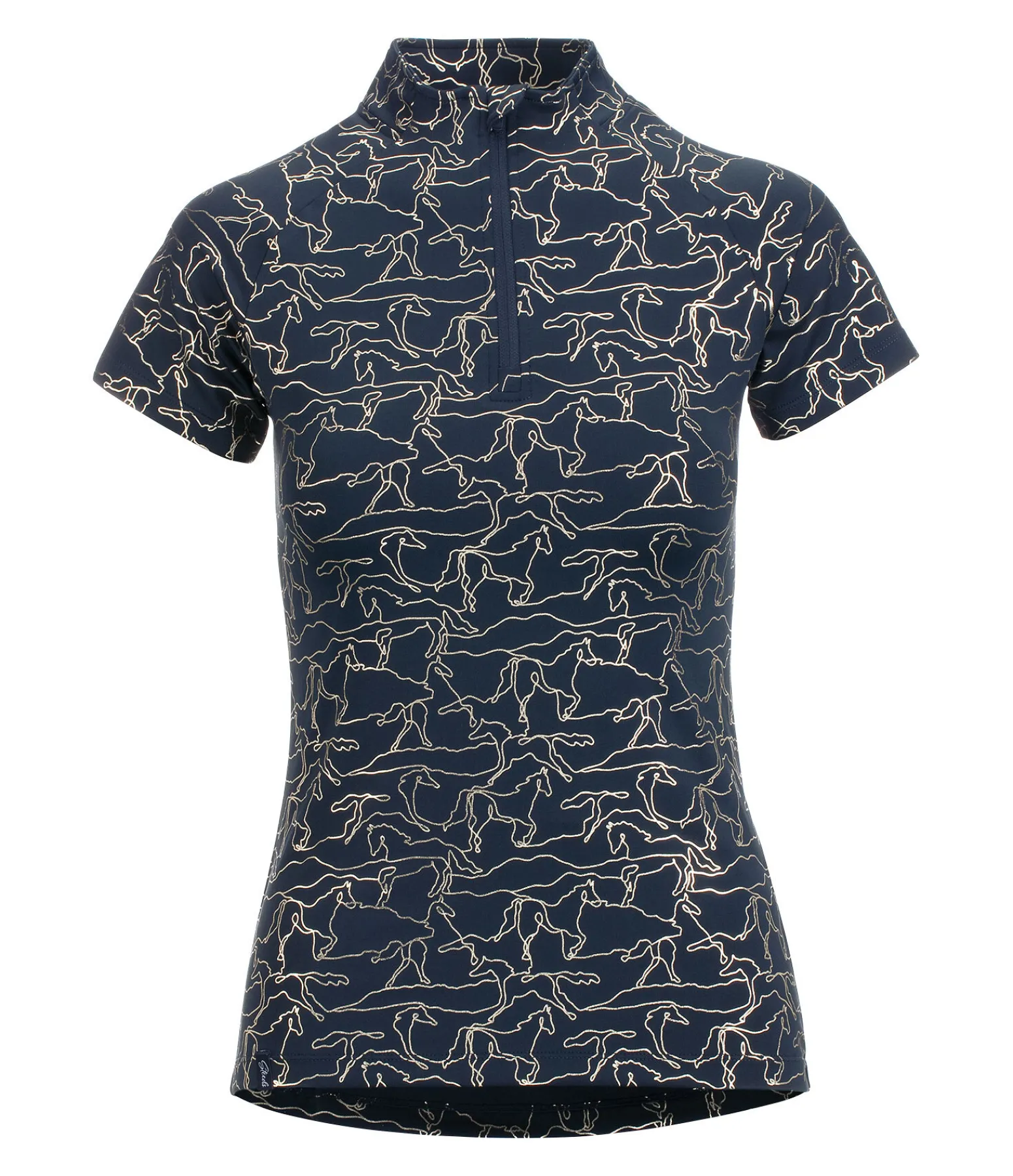 T-shirt technique. Manches raglan. Col montant zippé avec protège-menton. Imprimé argenté all-over. Matière respirante à séchage rapide. 88 % polyester, 12 % élasthanne.