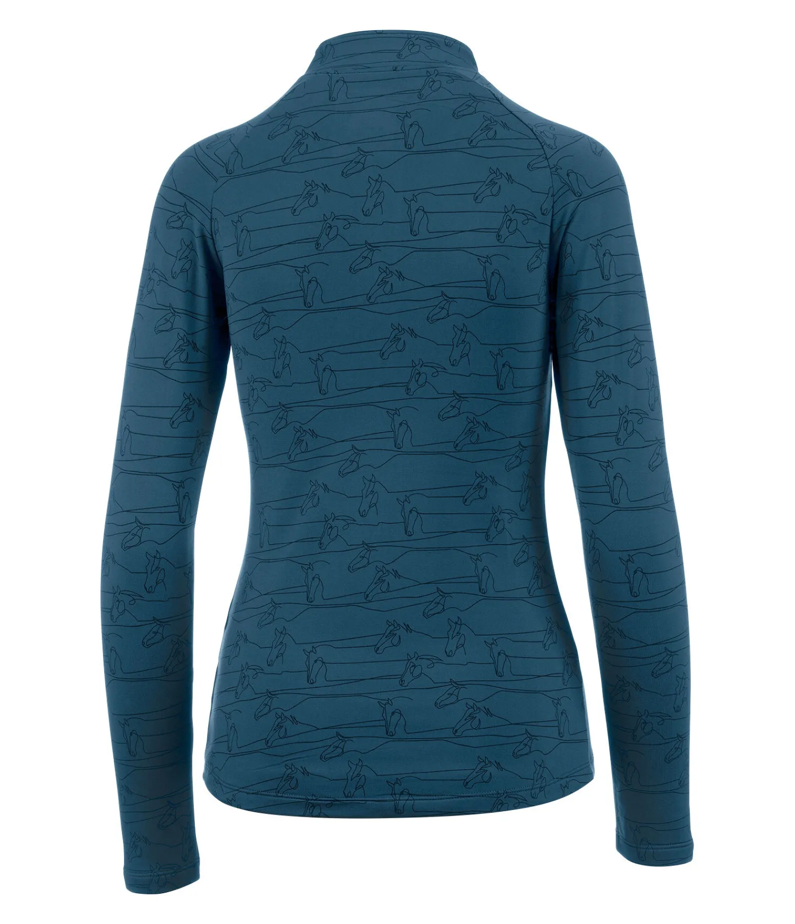 T-shirt technique à manches longues tendance avec intérieur molletonné et superbe imprimé all-over ton sur ton à motif cheval. Avec manches raglan. Col montant zippé avec protège-menton. Respirant et à séchage rapide. 90 % polyester, 10 % élasthanne.
