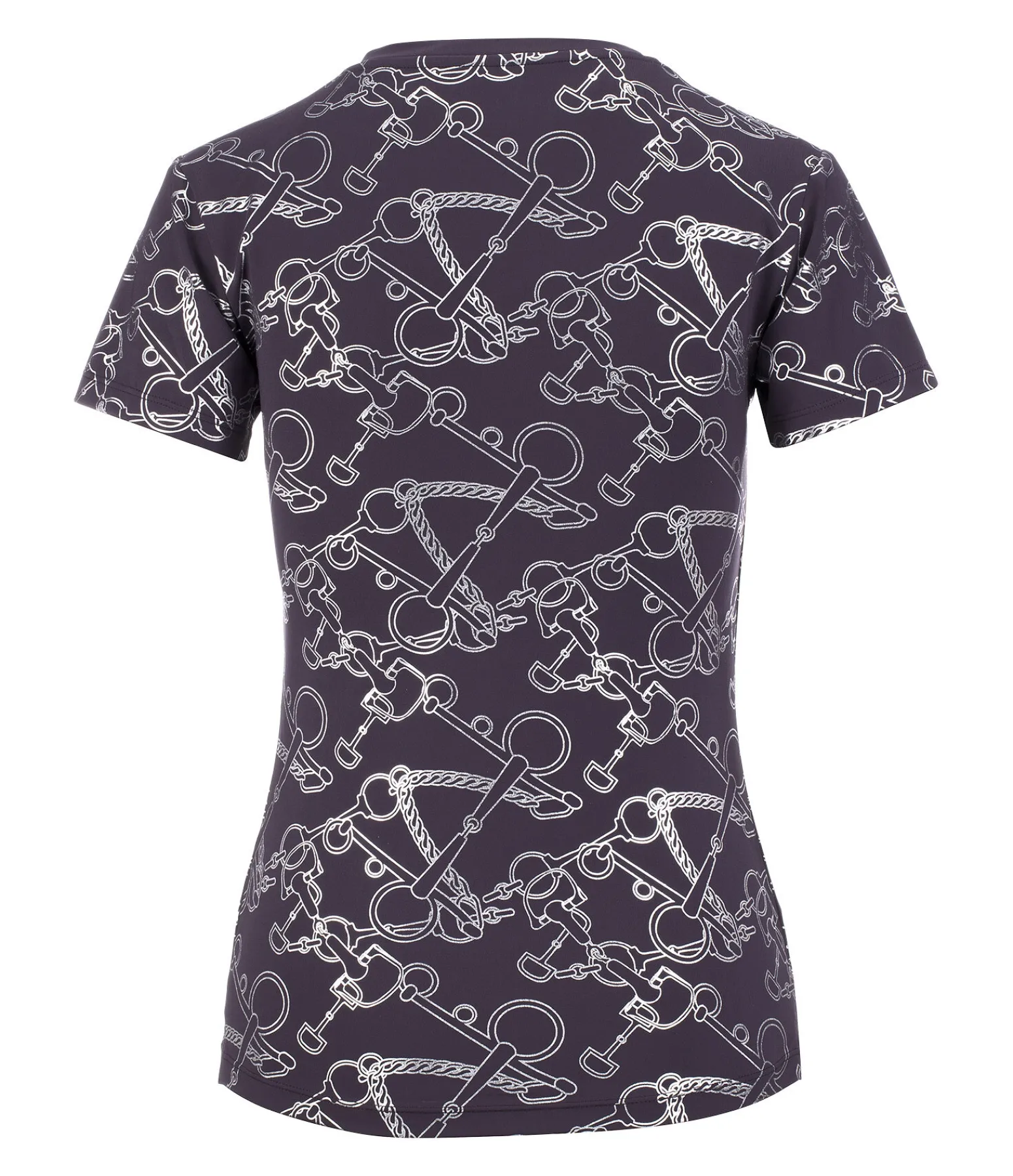 Élégant T-shirt technique à manches courtes. Col en V. Imprimé all-over couleur métallisée. Respirant et à séchage rapide. 88 % polyester, 12 % élasthanne