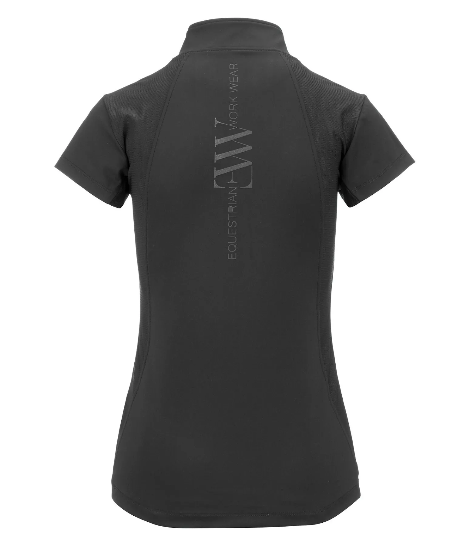 T-shirt technique avec de larges empiècements en mesh respirant, idéal pour les chaudes journées d’été. Col montant zippé sportif et grand imprimé dans le dos. La matière Odorless de qualité supérieure peut réduire de façon significative la prolifération de bactéries odorantes. Cela permet de se sentir toujours fraîche même après une longue journée. Extensible et à séchage rapide. 79 % polyester, 21 % élasthanne. Mesh 100 % polyester.