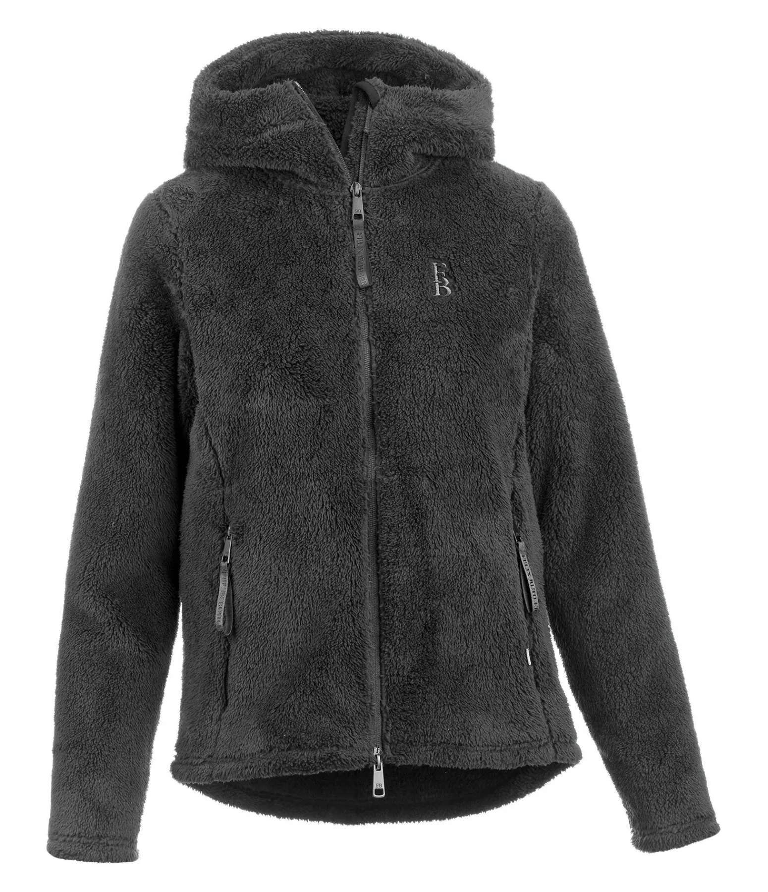 Veste à capuche extra douillette avec aspect peluche. Capuche haute. Extensible. Fermeture à glissière double sens devant. 2 poches zippées devant. Broderie Felix Bühler sur la poitrine. 100 % polyester.