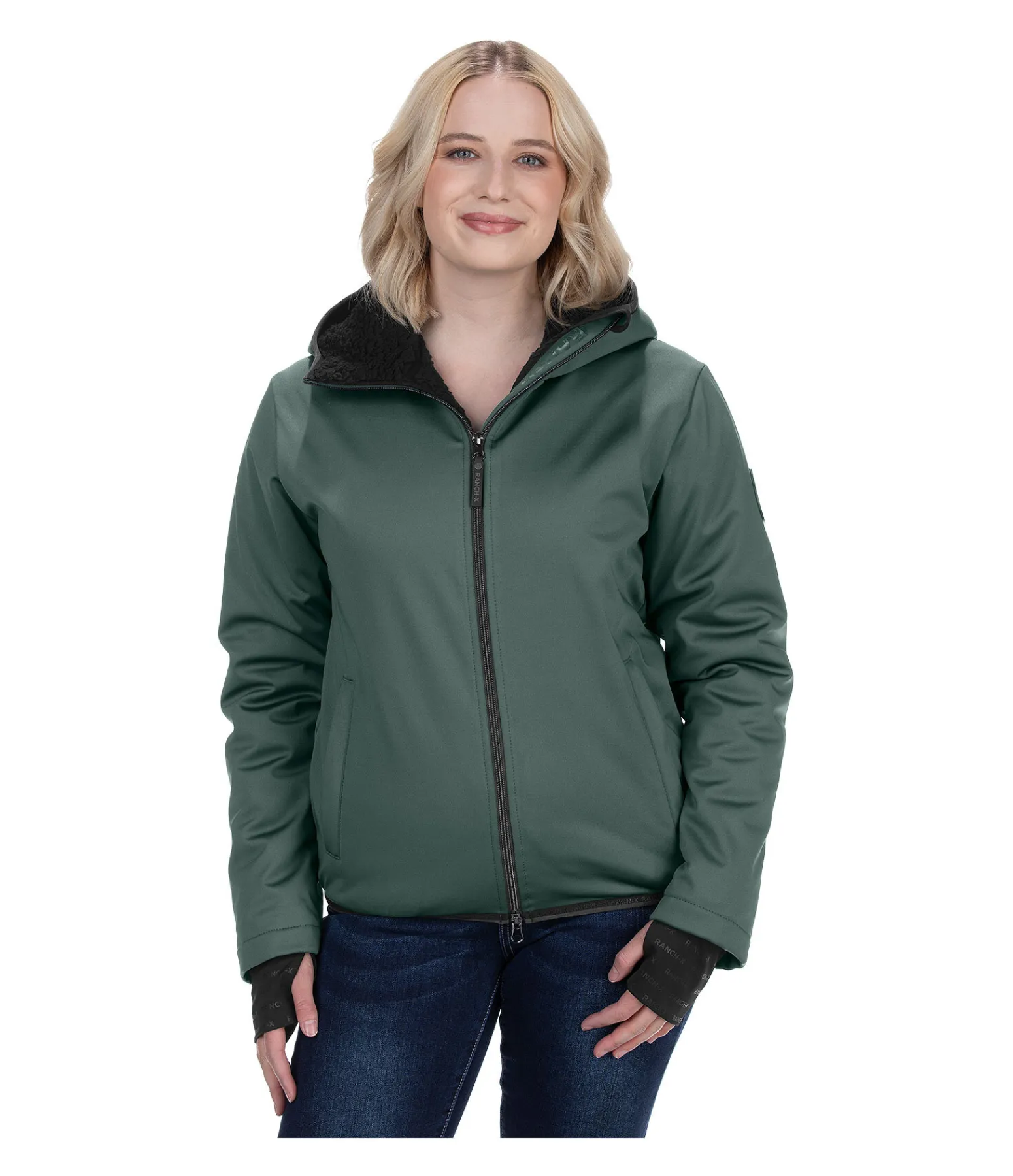 Veste softshell sportive avec doublure et capuche en polaire Teddy chaude. Matière déperlante, coupe-vent et respirante (5 000 MVP). Coupe ample et taille élastiquée garantissent un confort optimal. Fermeture à glissière double sens avec sous-patte. 2 grandes poches zippées. Poignets extensibles avec passe-pouce. Logo en relief sur la capuche et badge logo avec détails sur la manche. 100 % polyester.