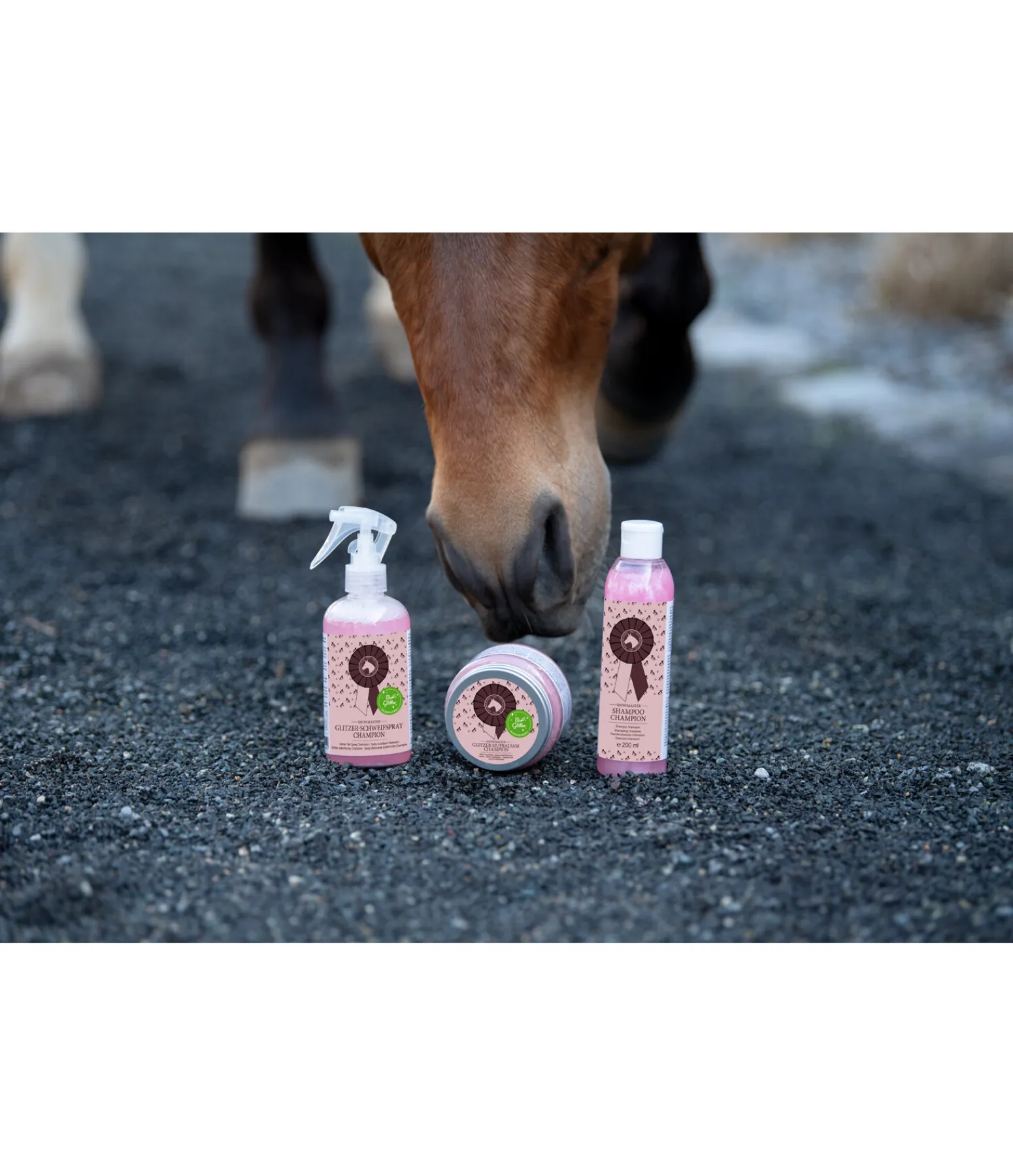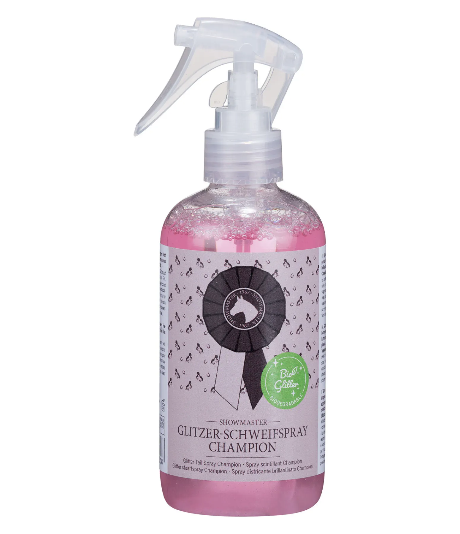 Spray scintillant pour la queue, la robe et la crinière, au parfum fruité de framboise. Pour des crins qui scintillent, une robe soyeuse et douce et un démêlage rapide. Sans microplastiques.