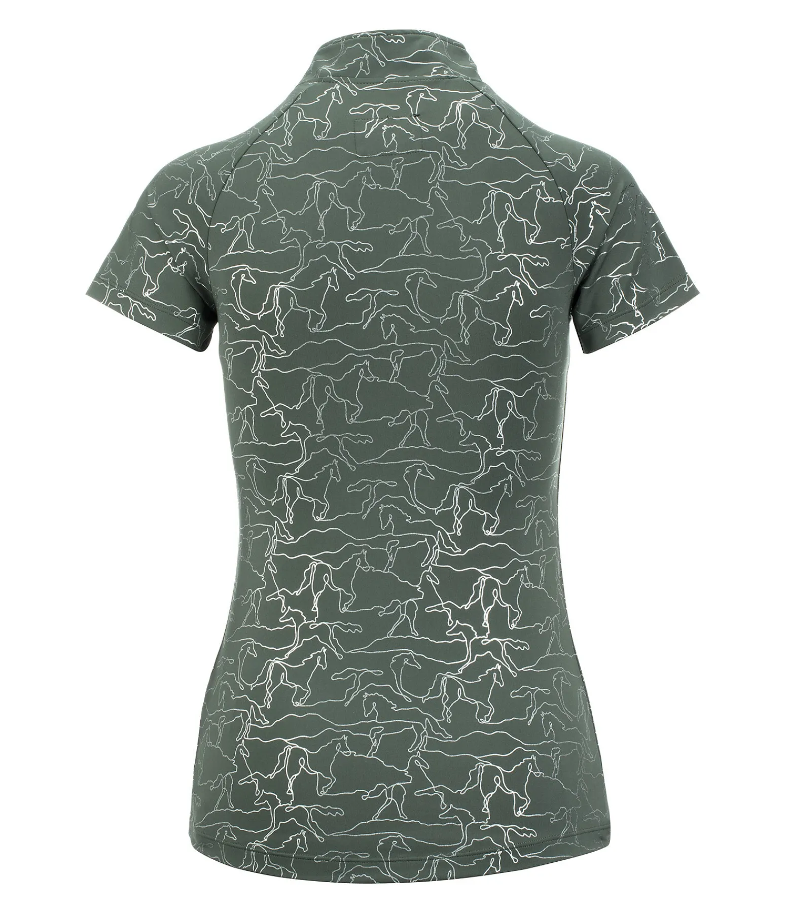 T-shirt technique. Manches raglan. Col montant zippé avec protège-menton. Imprimé argenté all-over. Matière respirante à séchage rapide. 88 % polyester, 12 % élasthanne.