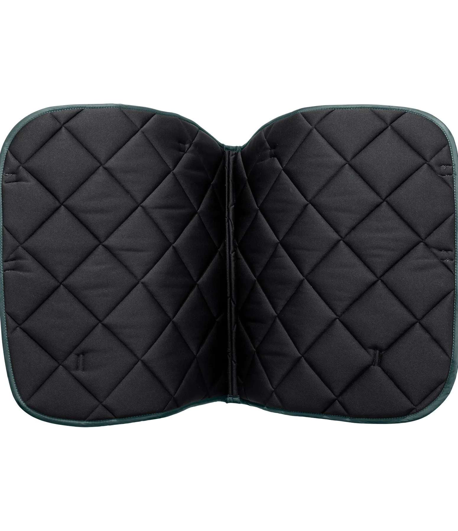Tapis de selle épuré et brillant en tissu satiné avec une élégante surpiqûre en losange. Orné de chaque côté d’une petite plaque métallique avec logo. Passants de sangle et de contre-sanglons avec patte auto-agrippante pratique. Dessous en Air mesh respirant et absorbant l’humidité. 100 % polyester.