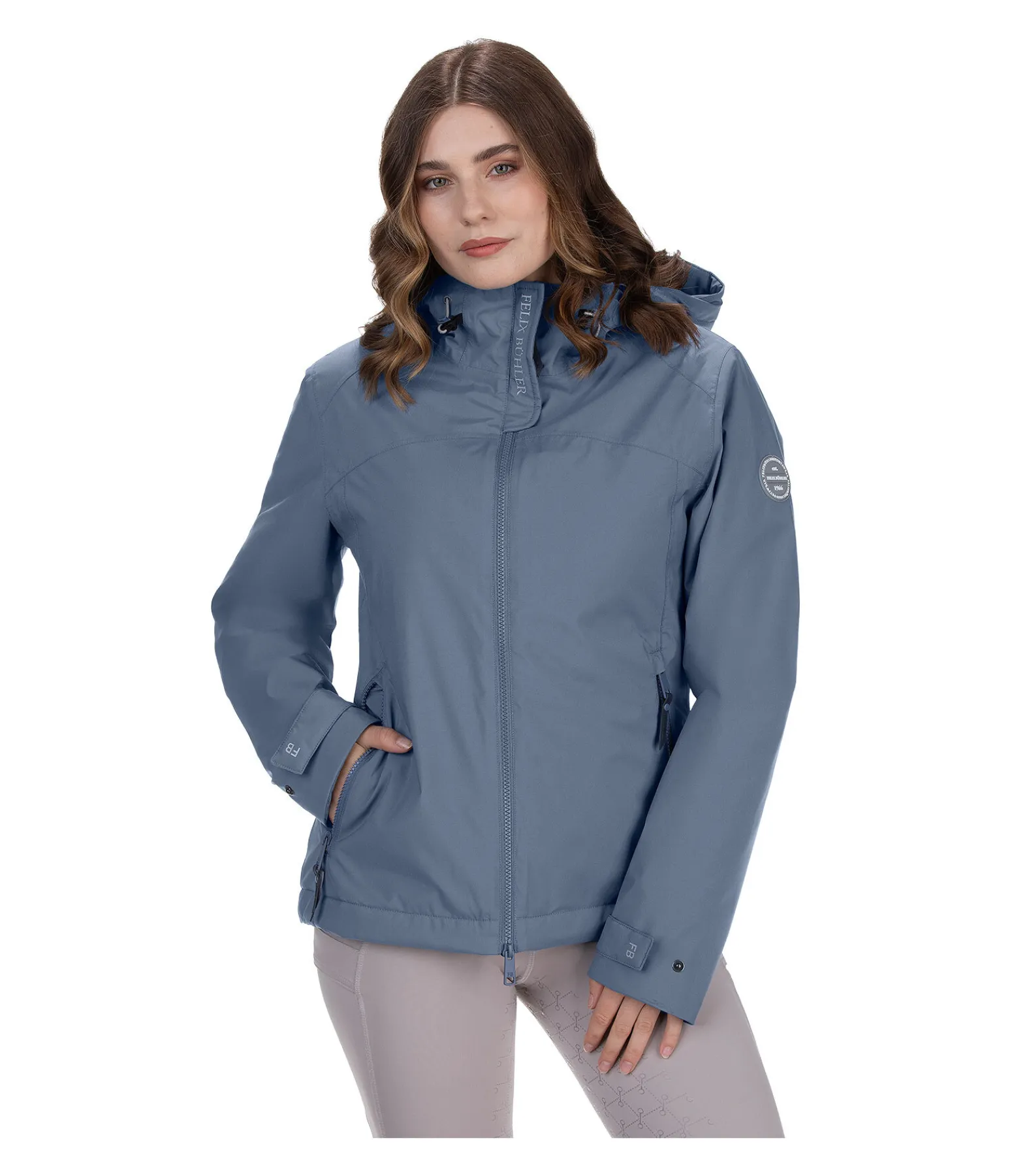 Courte veste d’équitation technique avec garnissage chaud en imitation duvet. Imperméable (10.000 mm), coupe-vent et respirante. 2 poches zippées devant, 1 poche intérieure zippée, fermeture à glissière double sens avec sous-patte, taille et bas des manches réglables, col haut avec capuche rembourrée réglable et pouvant être fixée dans le dos. Badge Felix Bühler sur la manche et imprimé réfléchissant Felix Bühler sur le col. 100 % polyester.