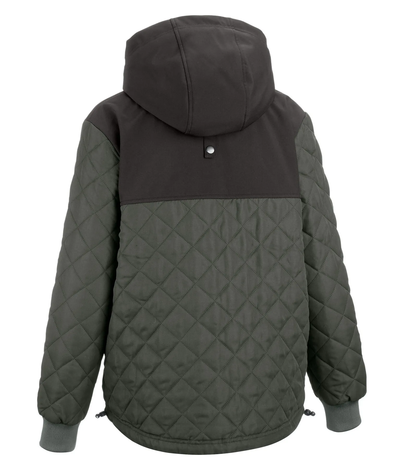 Veste matelassée avec capuche, à enfiler. Fonctionnelle et déperlante. Col montant zippé. Doublure en sherpa douce. Matelassage léger. Deux poches latérales zippées. Une grande poche à rabat avec patte auto-agrippante pour garder ses effets personnels en toute sécurité. Insert en softshell coupe-vent au niveau de la poitrine, des épaules et de la capuche. Ourlet élastiqué pour un ajustement parfait. Cette veste est idéale pour la mi-saison. Extérieur 100 % polyester ; softshell 94 % polyester, 6 % élasthanne ; doublure 100 % coton ; matelassage 100 % polyester.