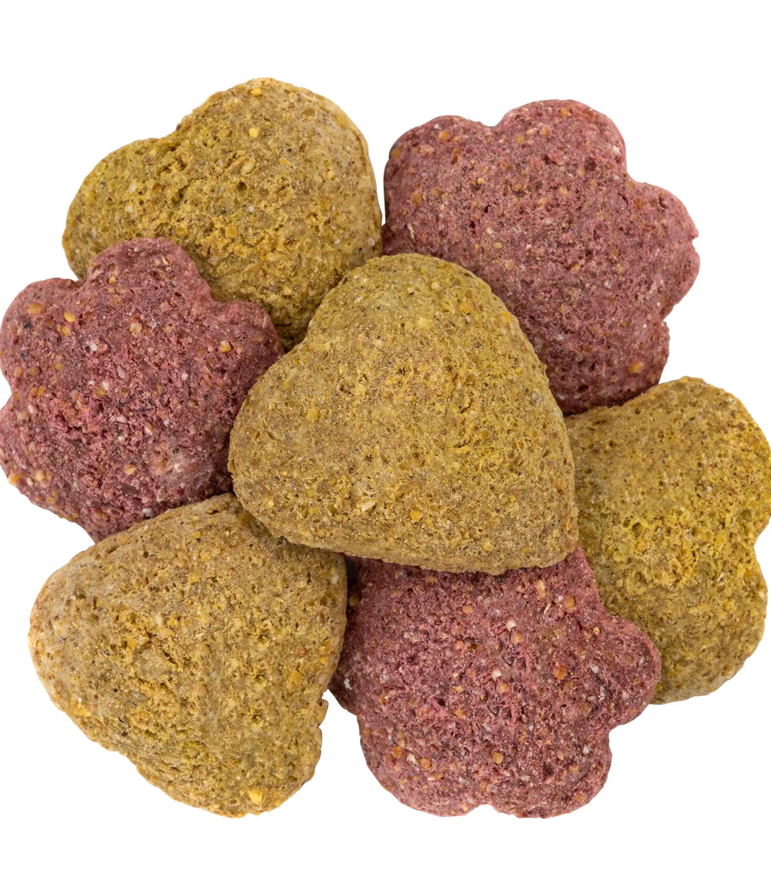 Composition des coeurs à la banane : Maïs, blé, son de blé, huile de colza (brute), carbonate de calcium, chips de banane (1 %), chlorure de sodium