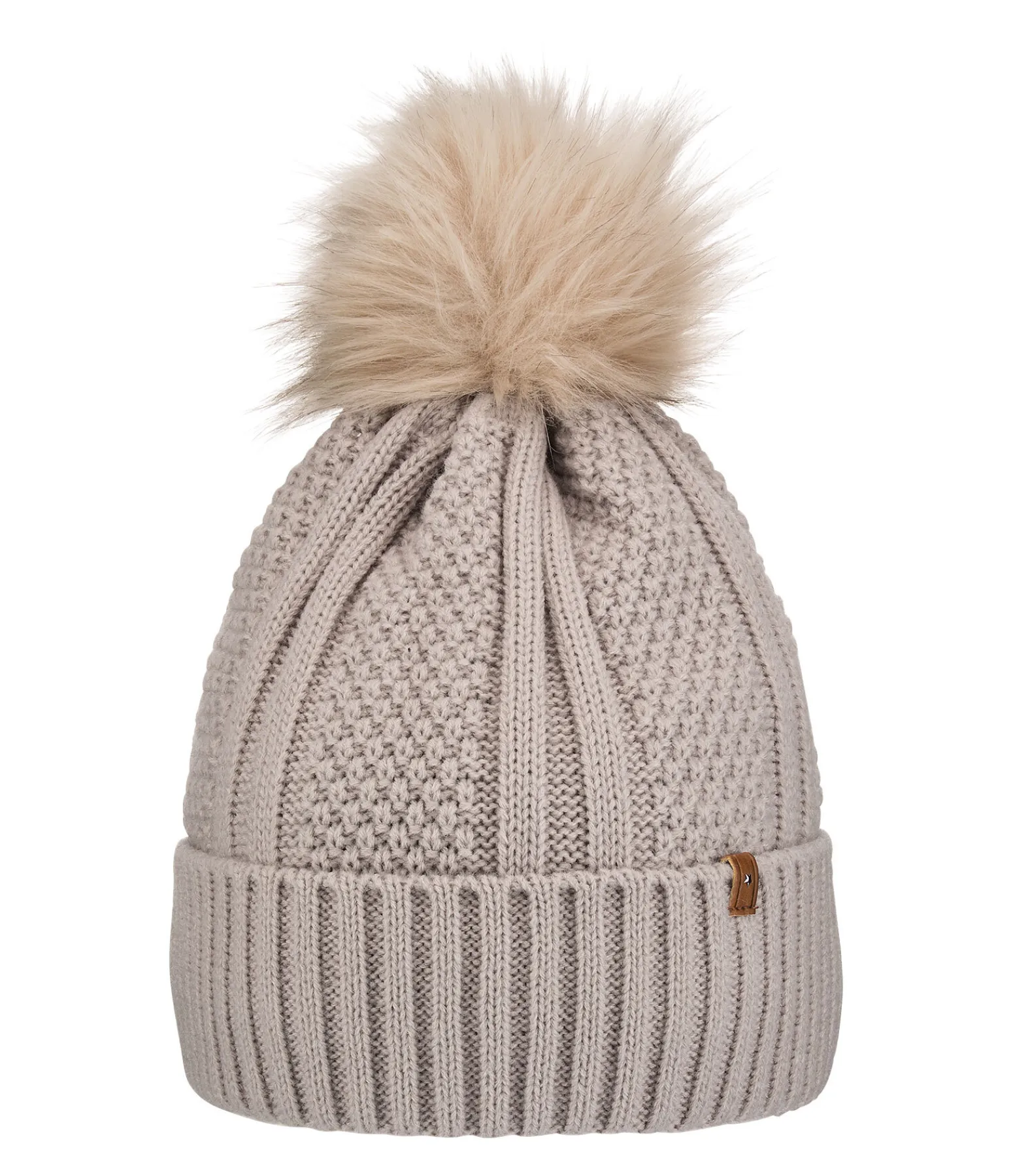 Bonnet à revers en maille avec pompon en fourrure synthétique. Doublure intérieure en polaire chaude. 100 % polyacrylique, doublure 100 % polyester.