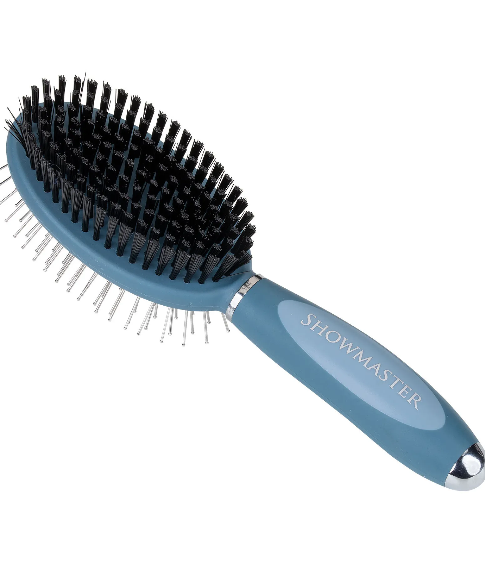 Un côté avec de solides pointes en acier pour peigner la crinière et la queue et l’autre côté avec des poils en synthétique pour retirer la poussière et la saleté. Poignée ergonomique en plastique. 23 x 7 cm.