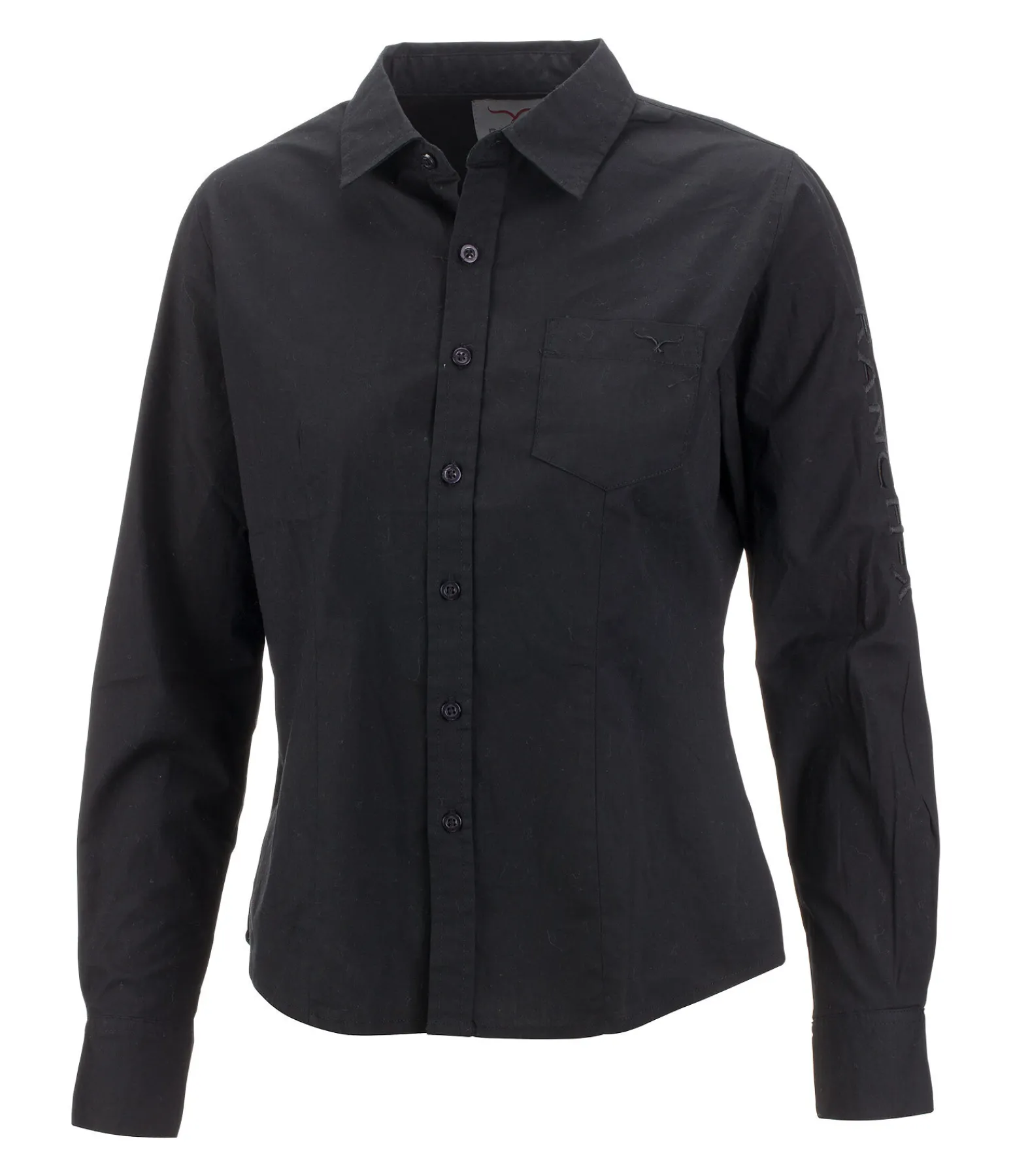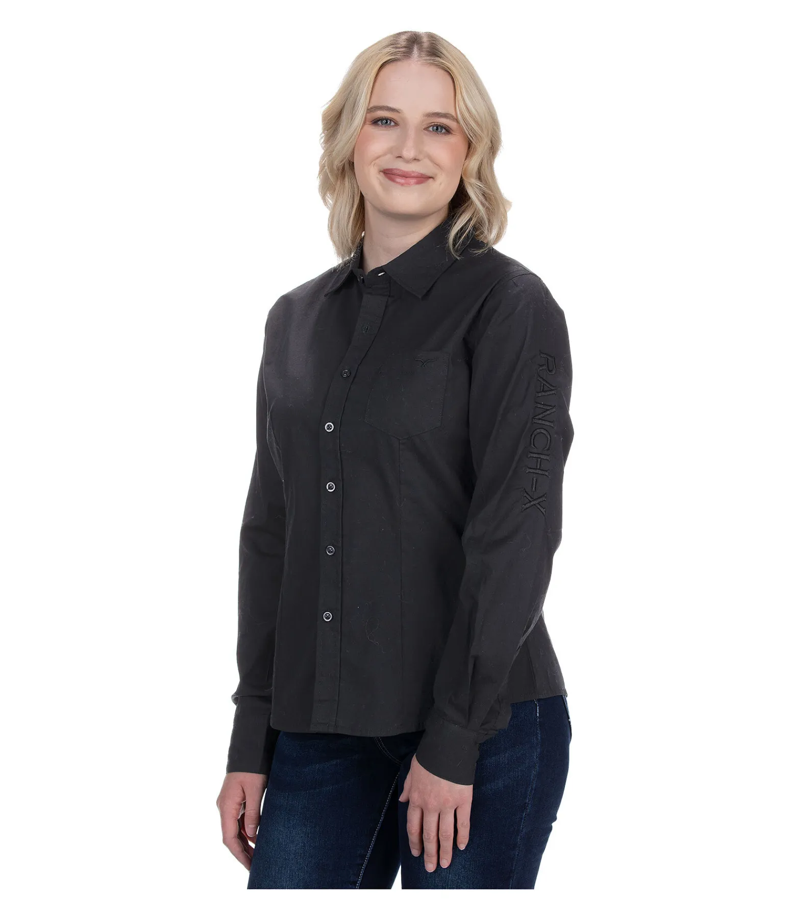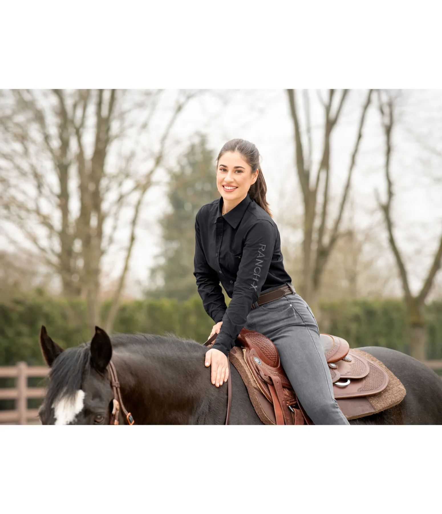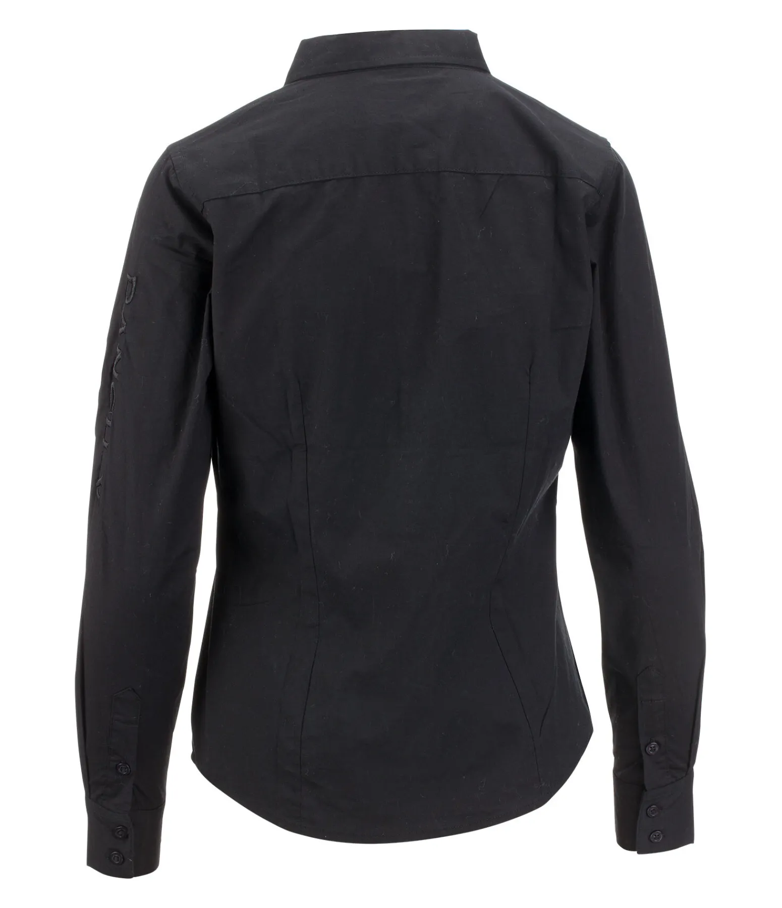 Chemise confortable et sportswear pour femme à porter au quotidien ou en concours. Avec broderie logo discrète sur la manche et la poche de poitrine. Respirante. 97 % coton, 3 % élasthanne.