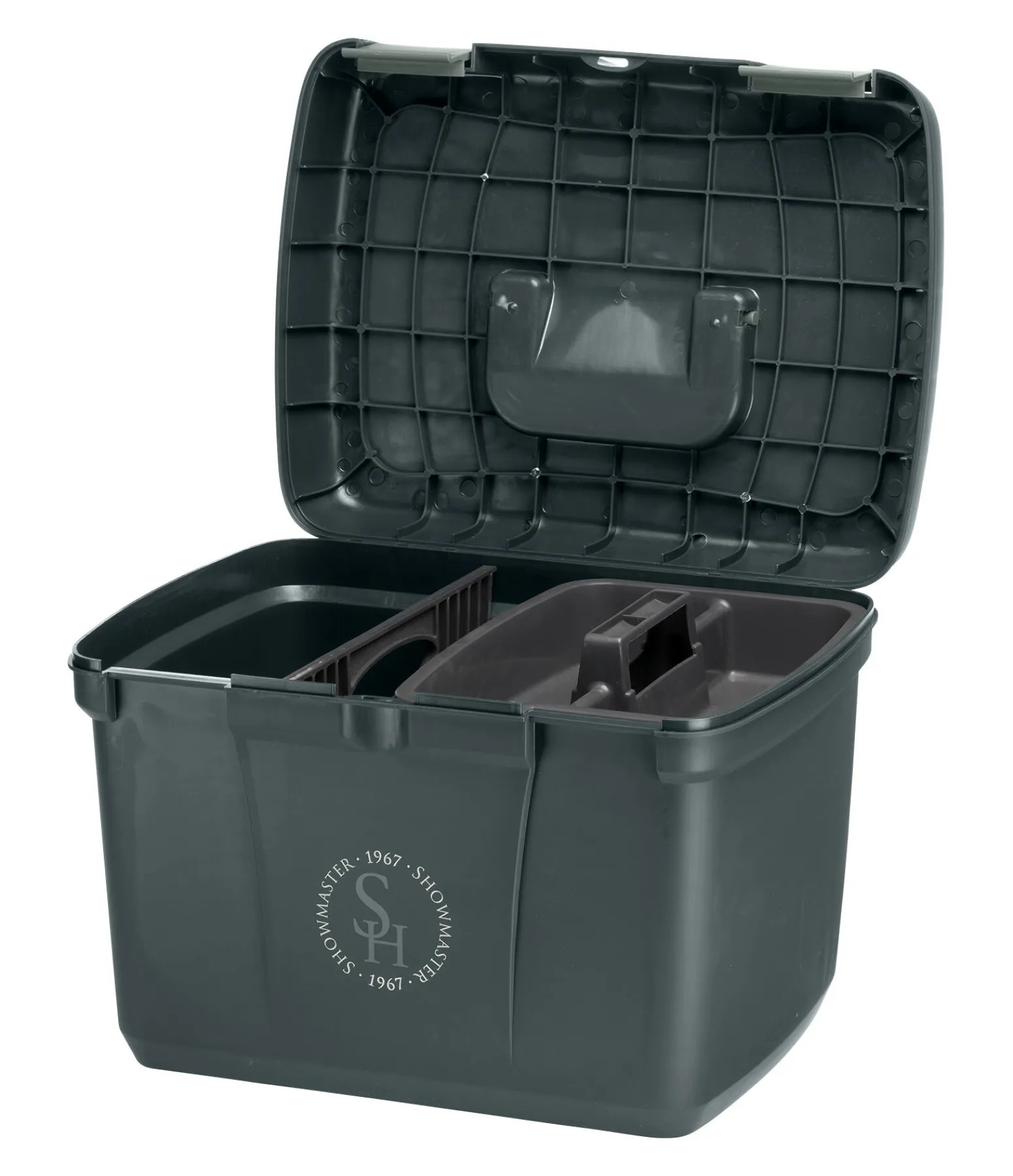 Grand coffre de pansage solide, en matière plastique de qualité. Un compartimentage intérieur permet de ranger à la verticale les produits d’entretien tels que les flacons. Compartiment amovible pour les petits accessoires. Verrouillable. Cadenas non inclus. 40 x 30 x 30 cm.