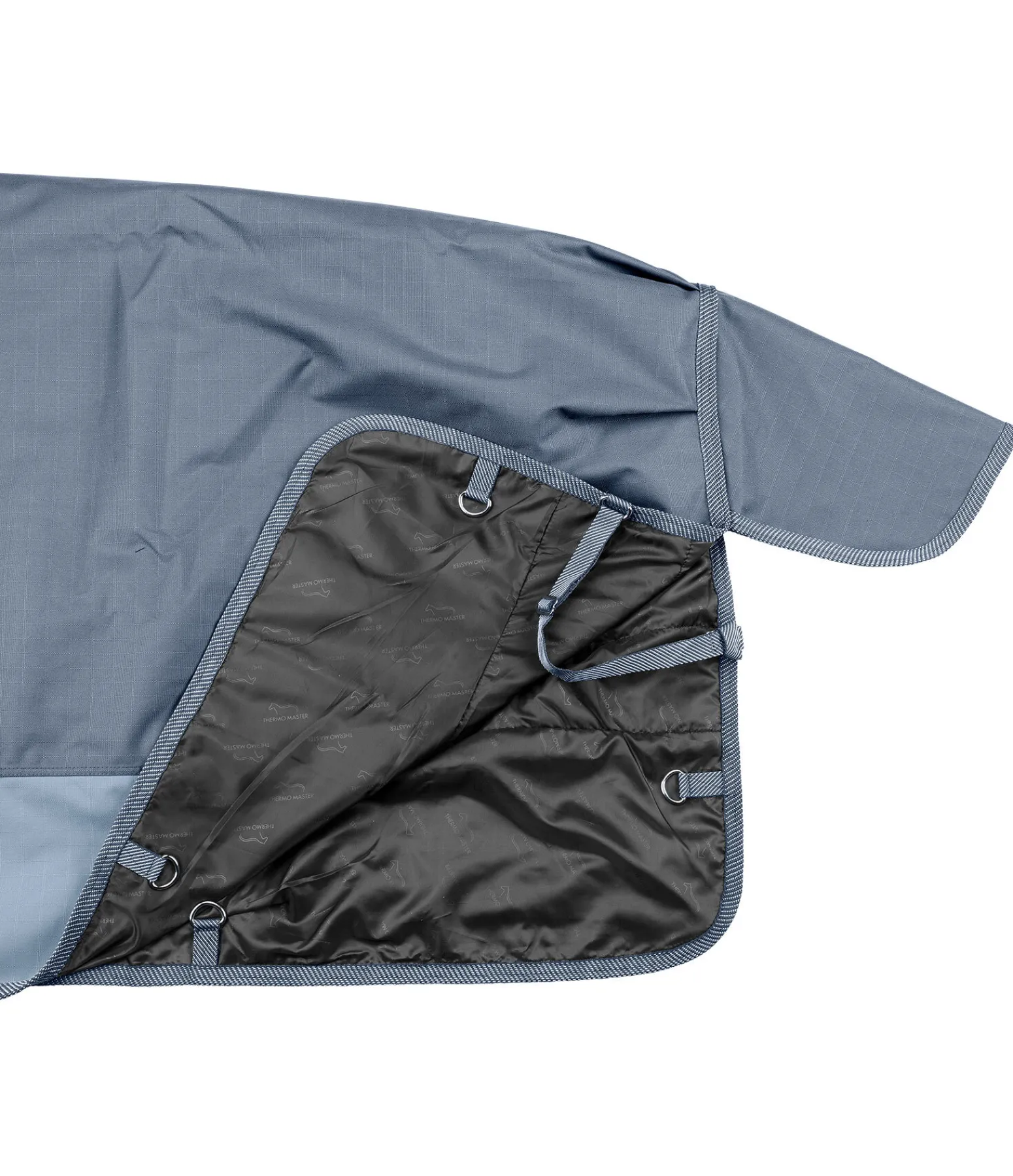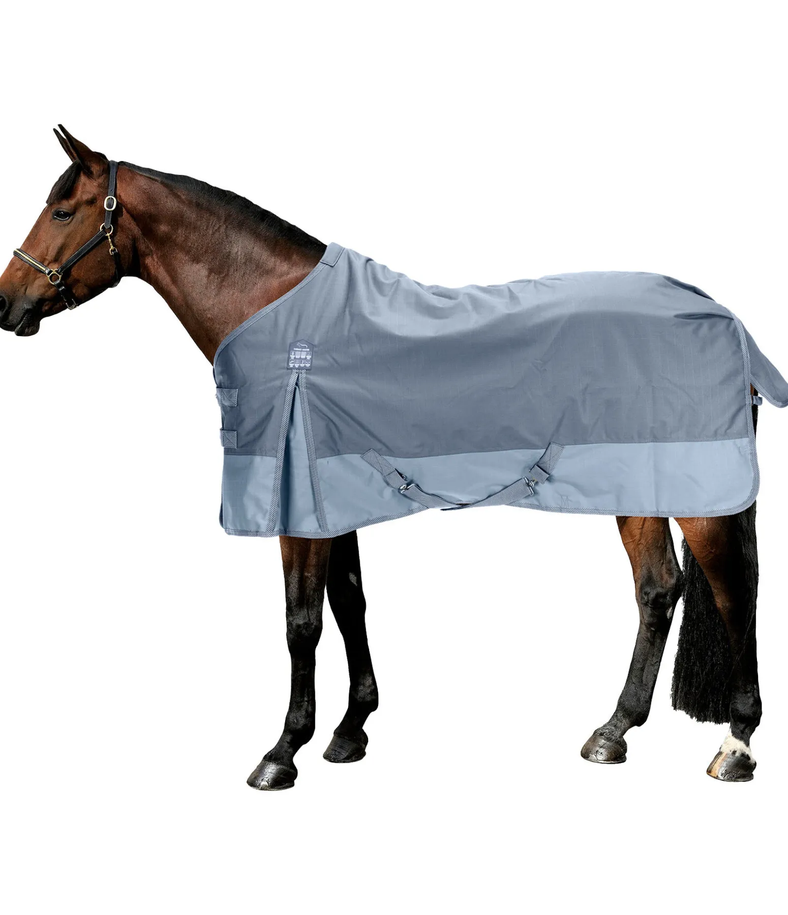 Couverture d’extérieur solide, imperméable (4 000 mm) en matière technique résistante Ripstop 1 000 deniers avec grammage léger 50 g. Grands plis d’aisance pour une liberté de mouvement optimale. Bandes de couleur assortie le long des flancs. Doublure lisse protégeant la robe. Double fermeture de poitrail avec crochets en T, sursangles croisées et courroie de queue réglable. Anneaux permettant de fixer des courroies de cuisses (non incluses).100 % polyester.